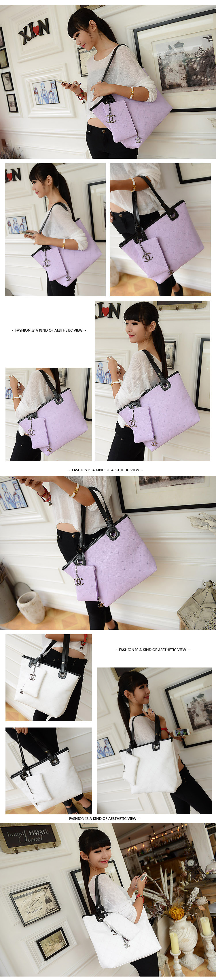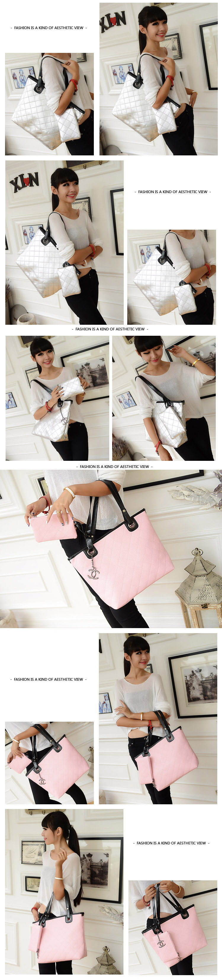 2014 new Japan and Korean style PU embroider line diamond lattice women handbag