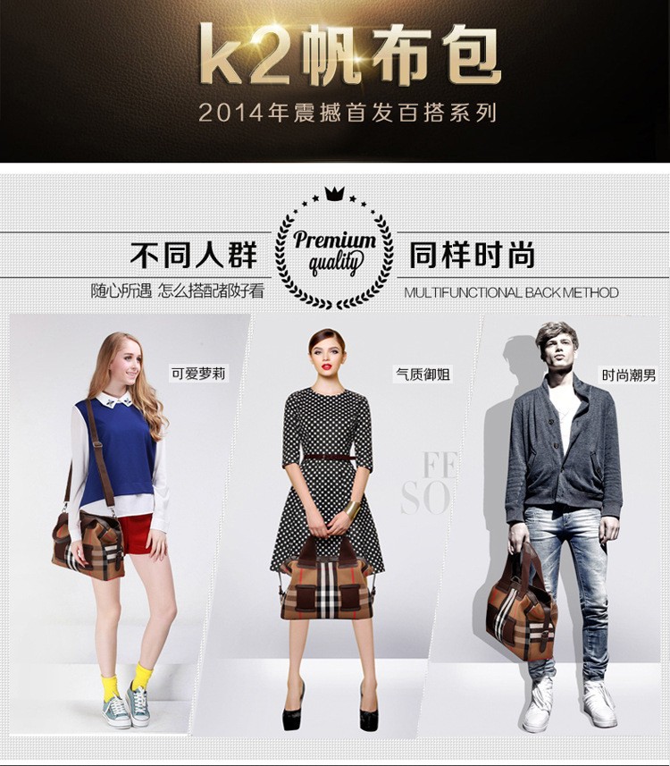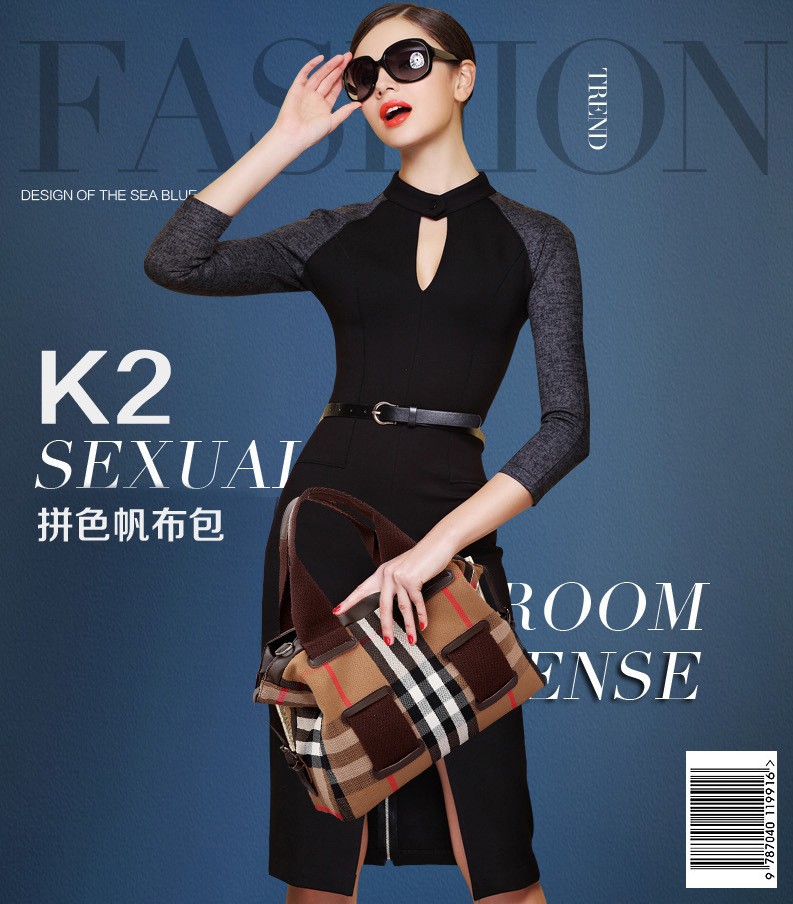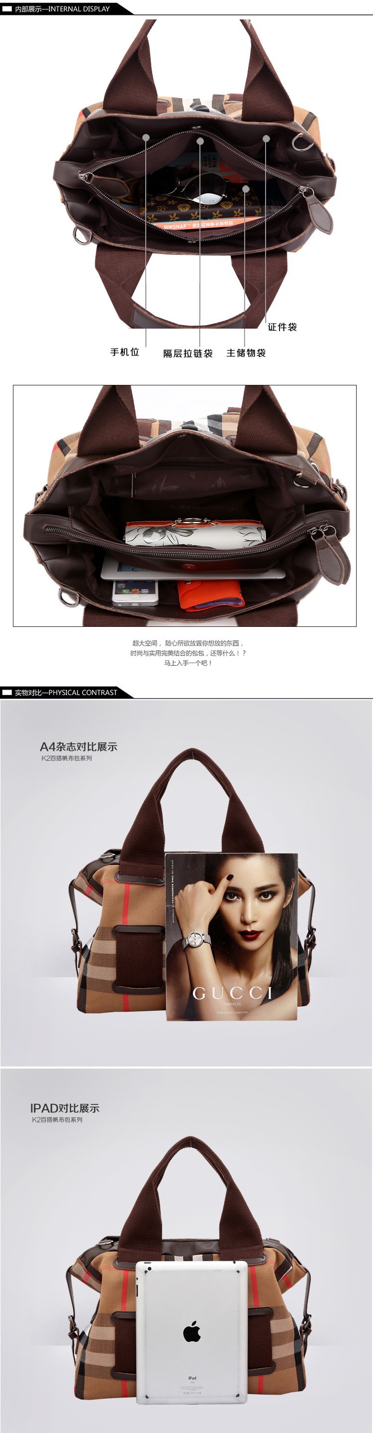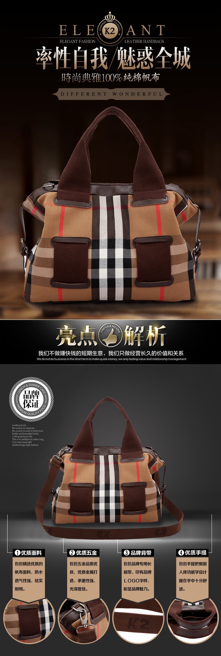 Lattice tone fashion women messenger bag with leather handbag shoulder bag casual canvas bag free shipping