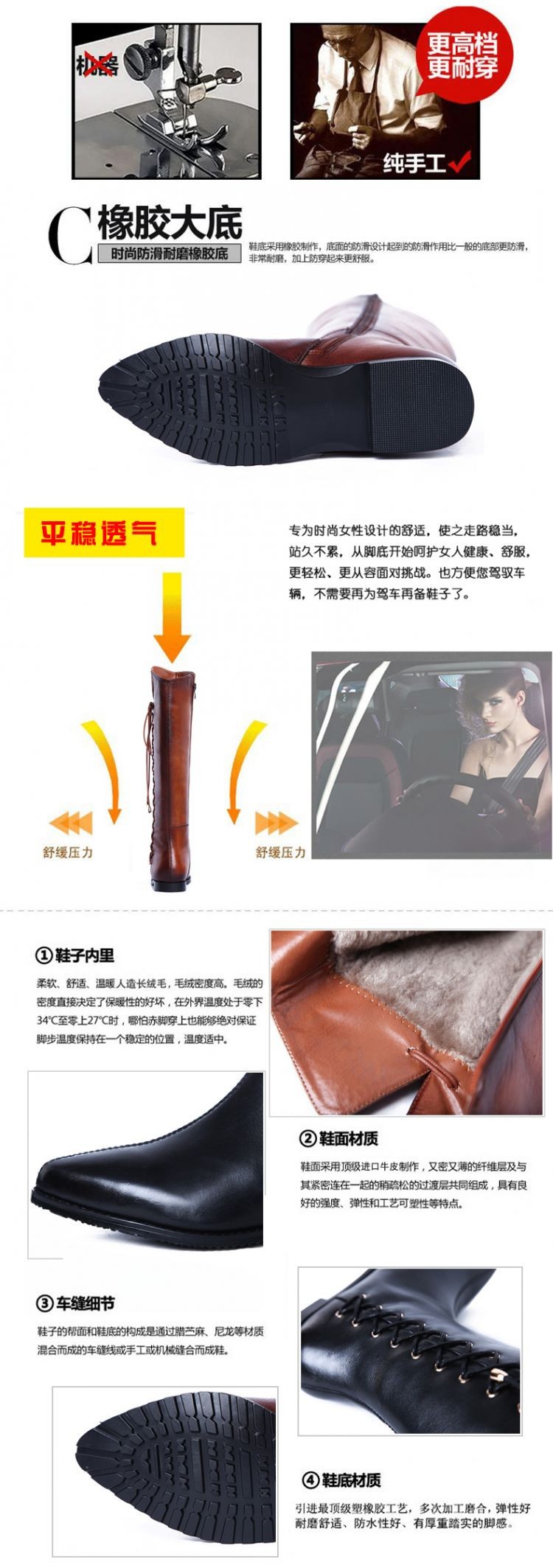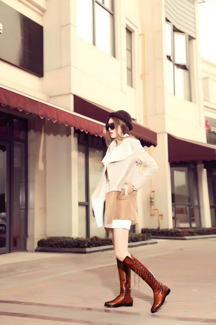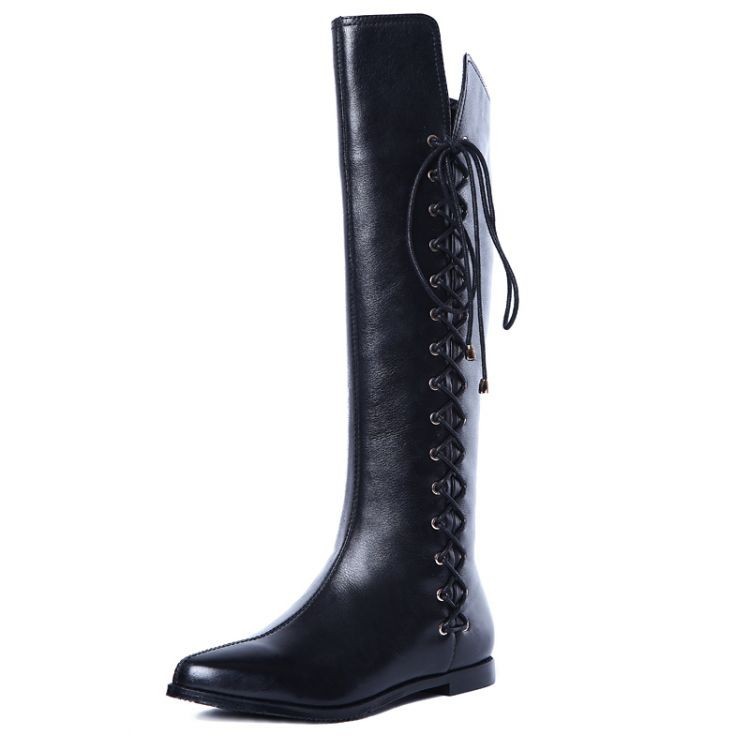 free shipping brand design Genuine Leather Ladies Fashion Knee-high Long Boots Flat Winter Autumn Riding boots plus size 33-43