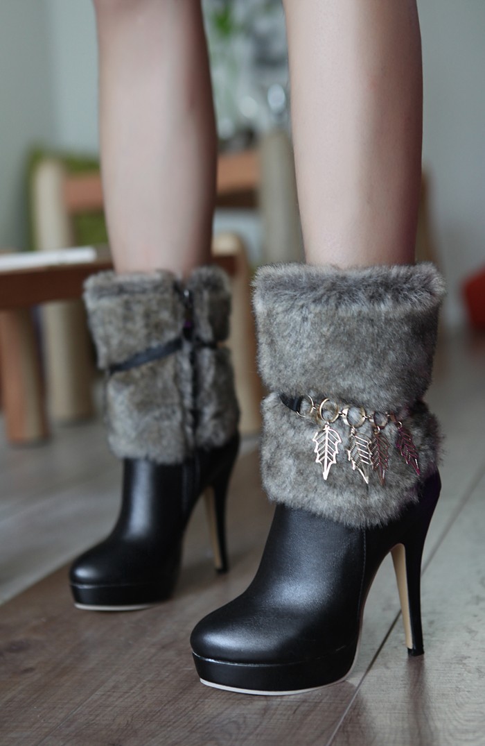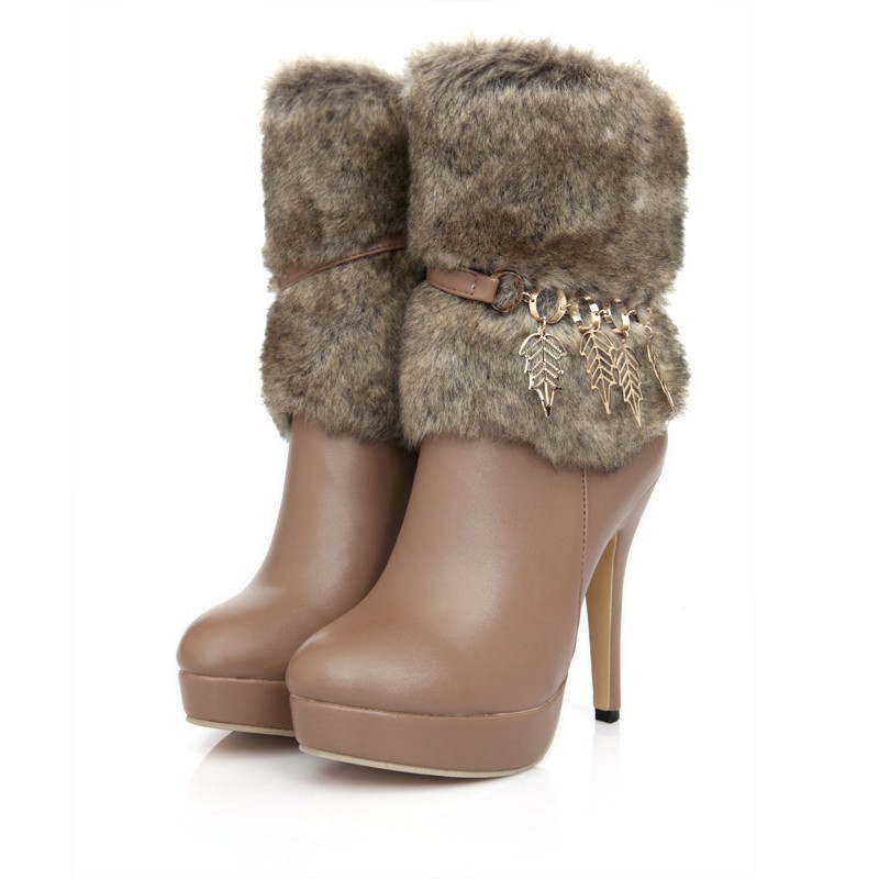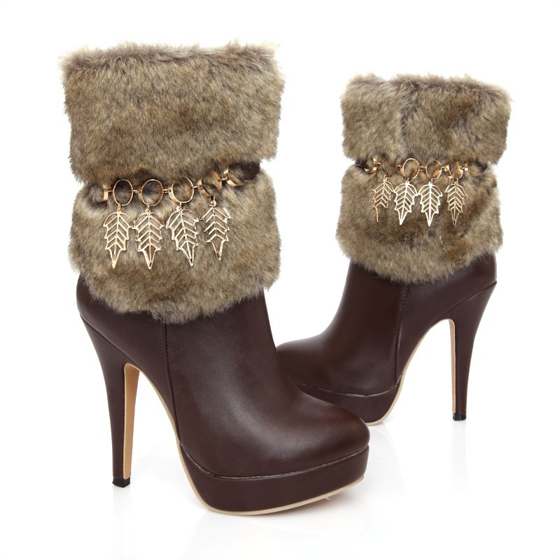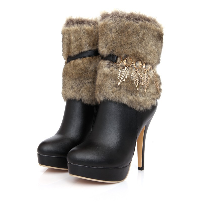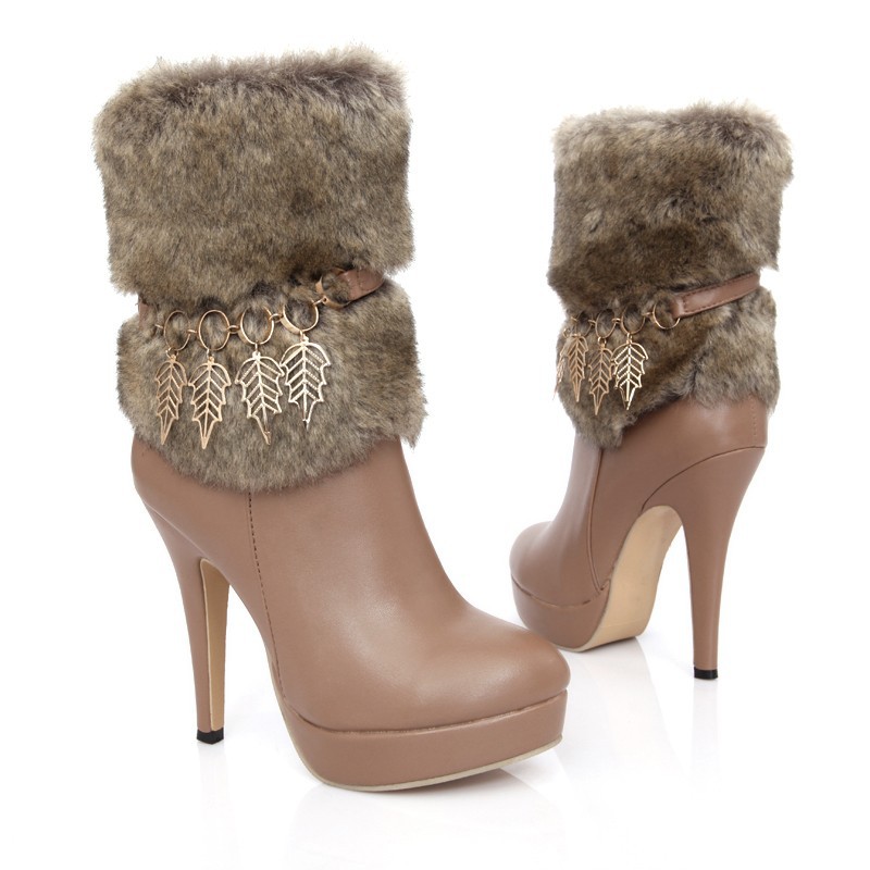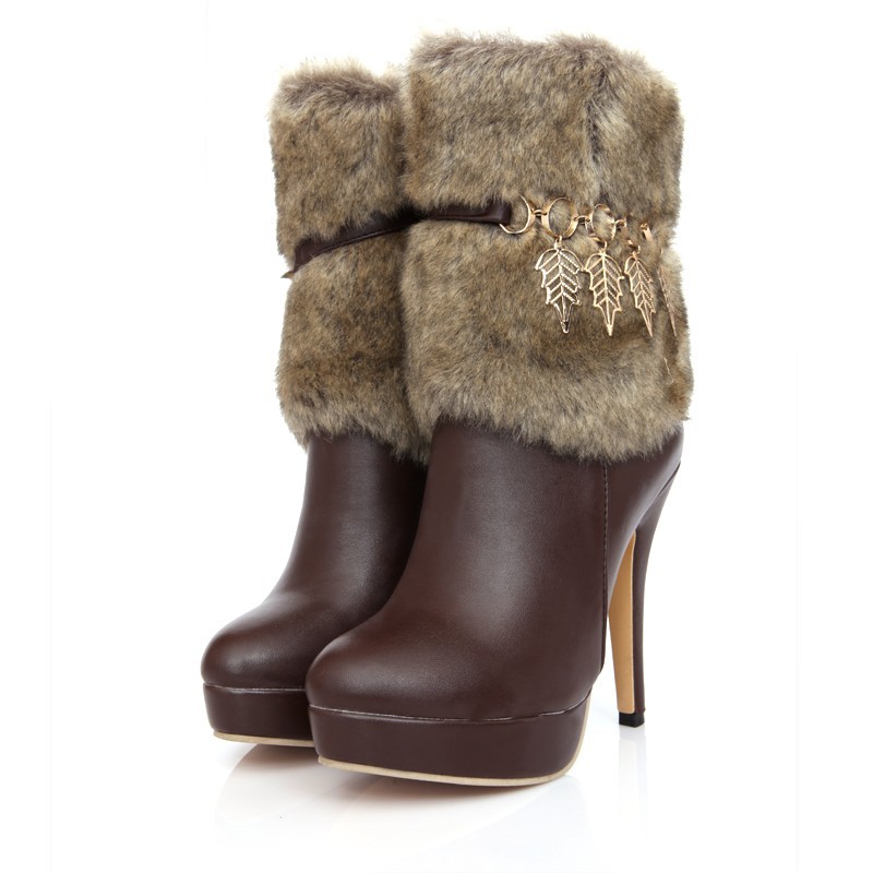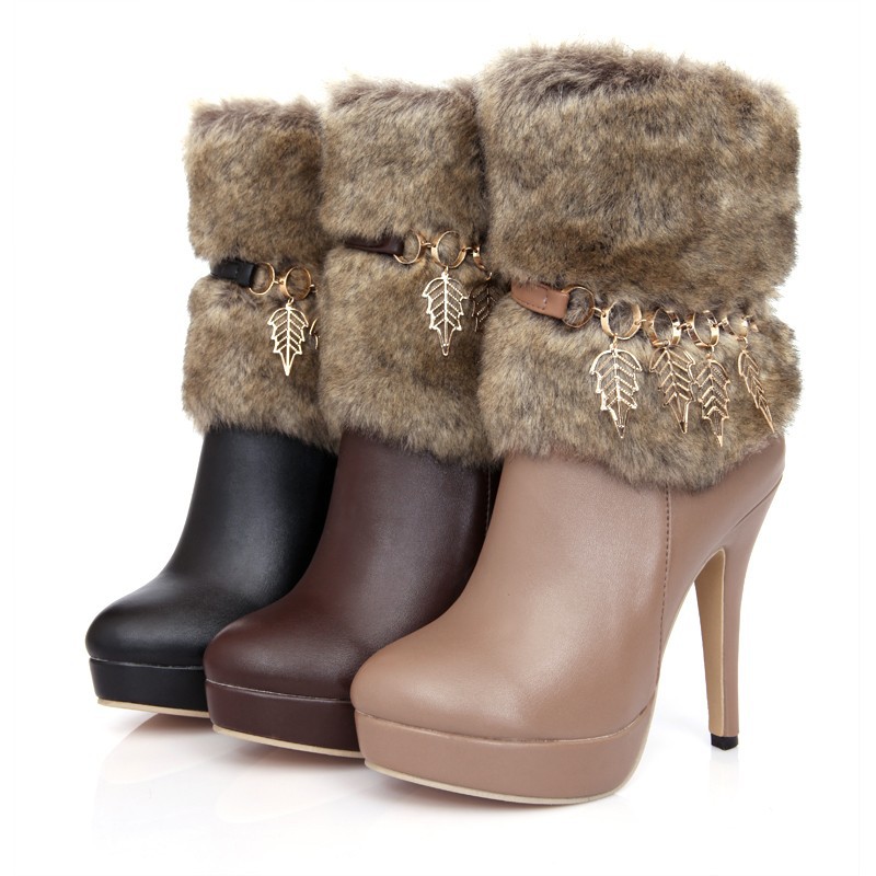 New 2014 Fashion women winter warm ankle boots sexy fur high heel platform shoes snow boots plus size 32-43