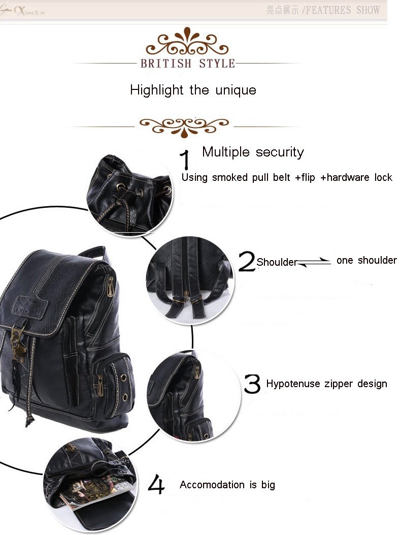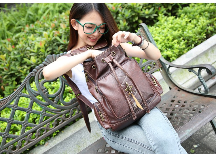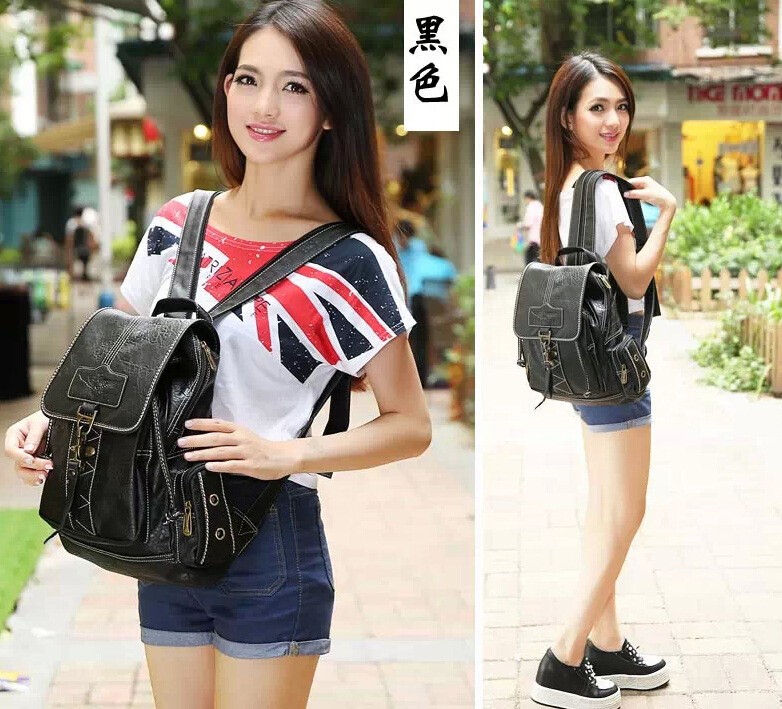 2014 New Retro pumping belt hook bag women backpack PU leather women’s casual day packs school backpacks