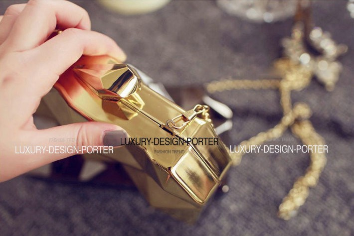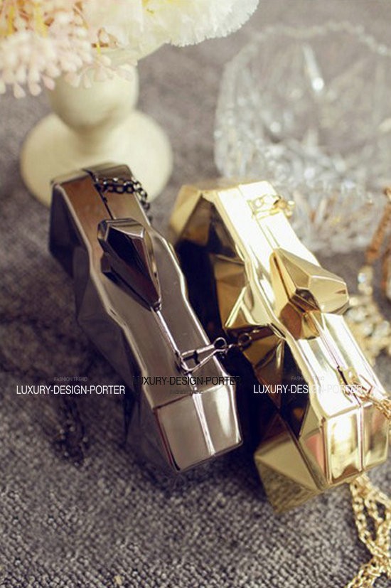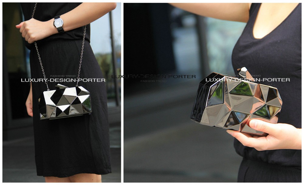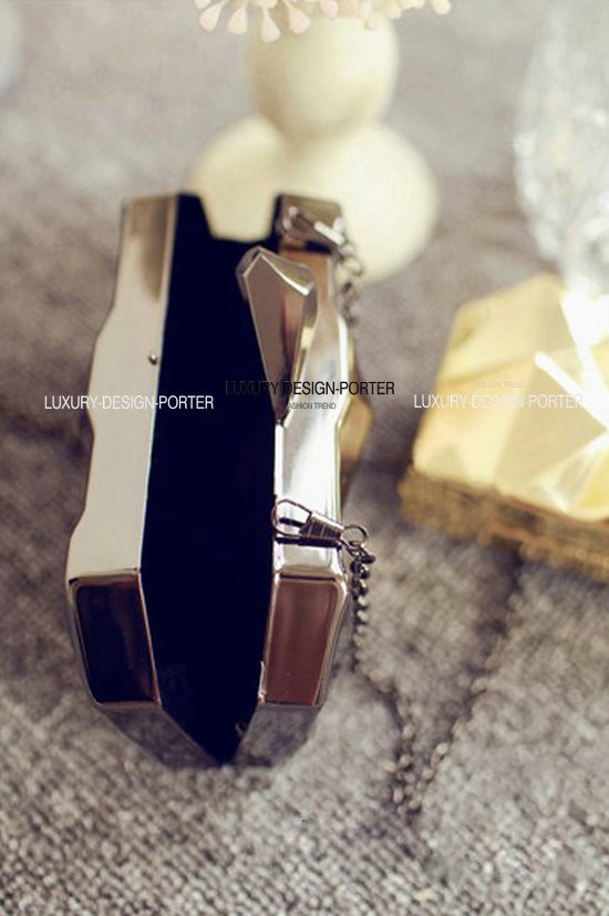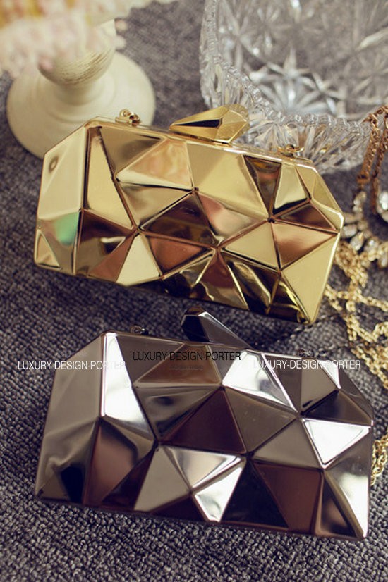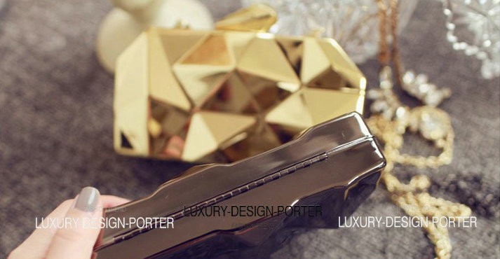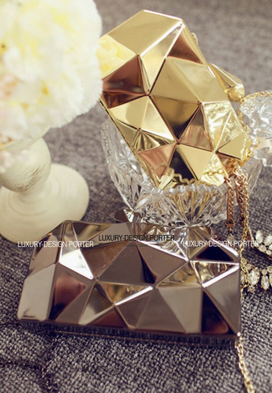 Featured by 3D dimensional shape, shinning polish, large space when open, detachable gold tone chain, definitely eye catching when u hold it. Great for party use.