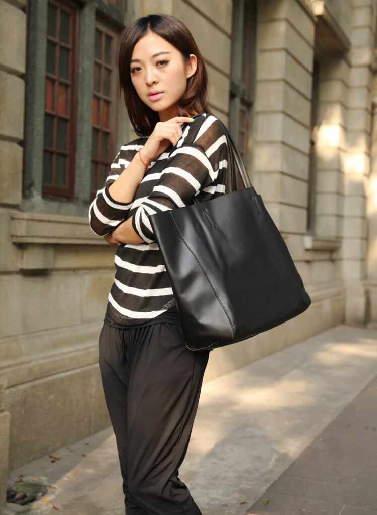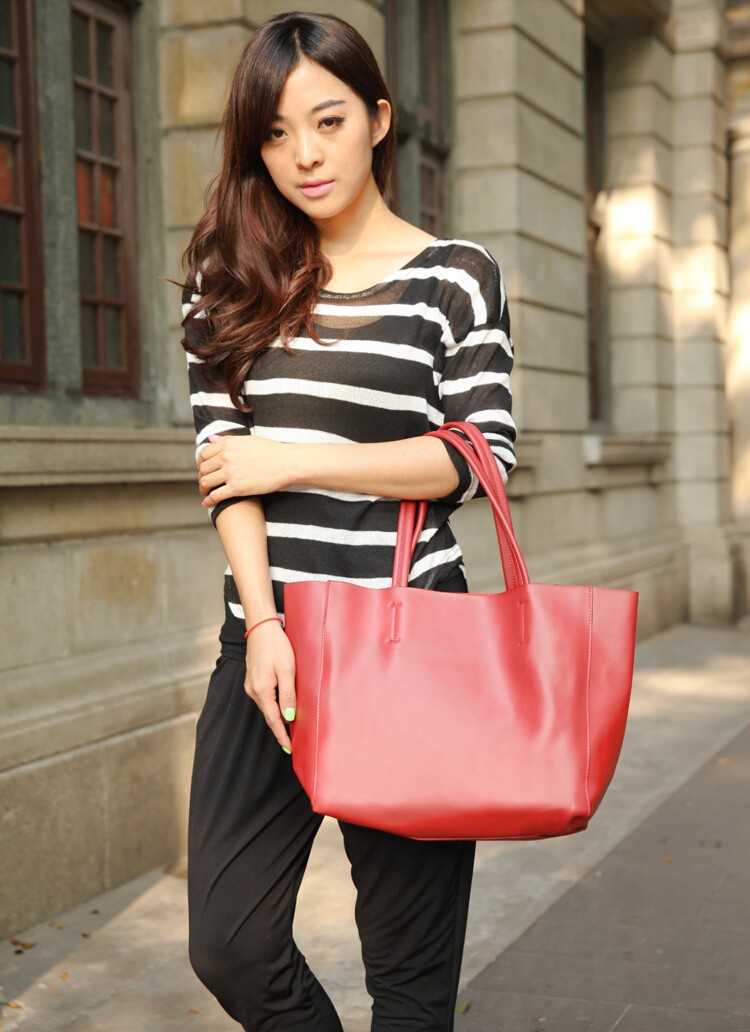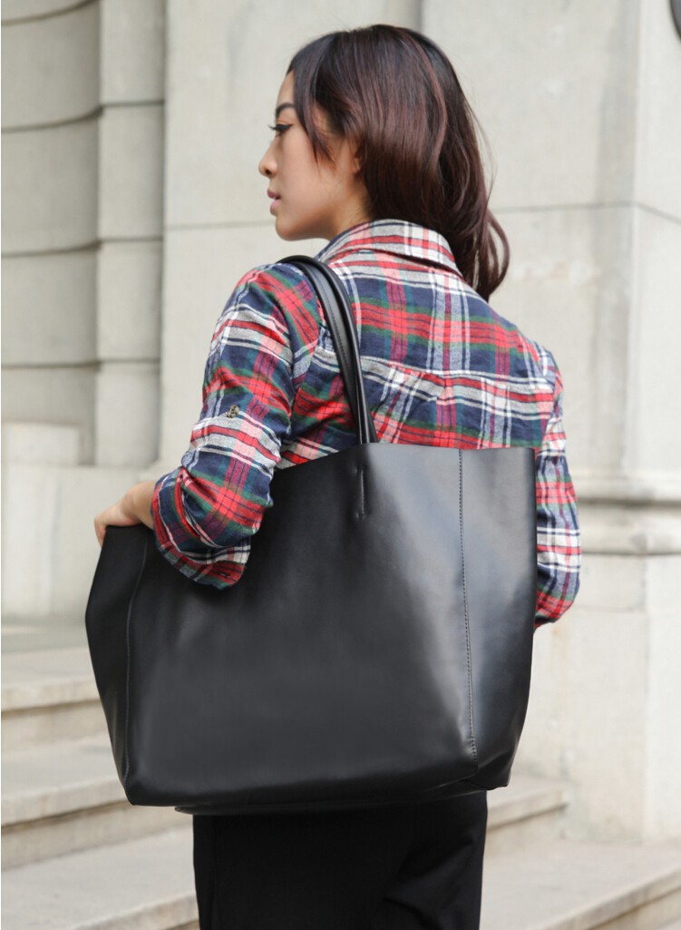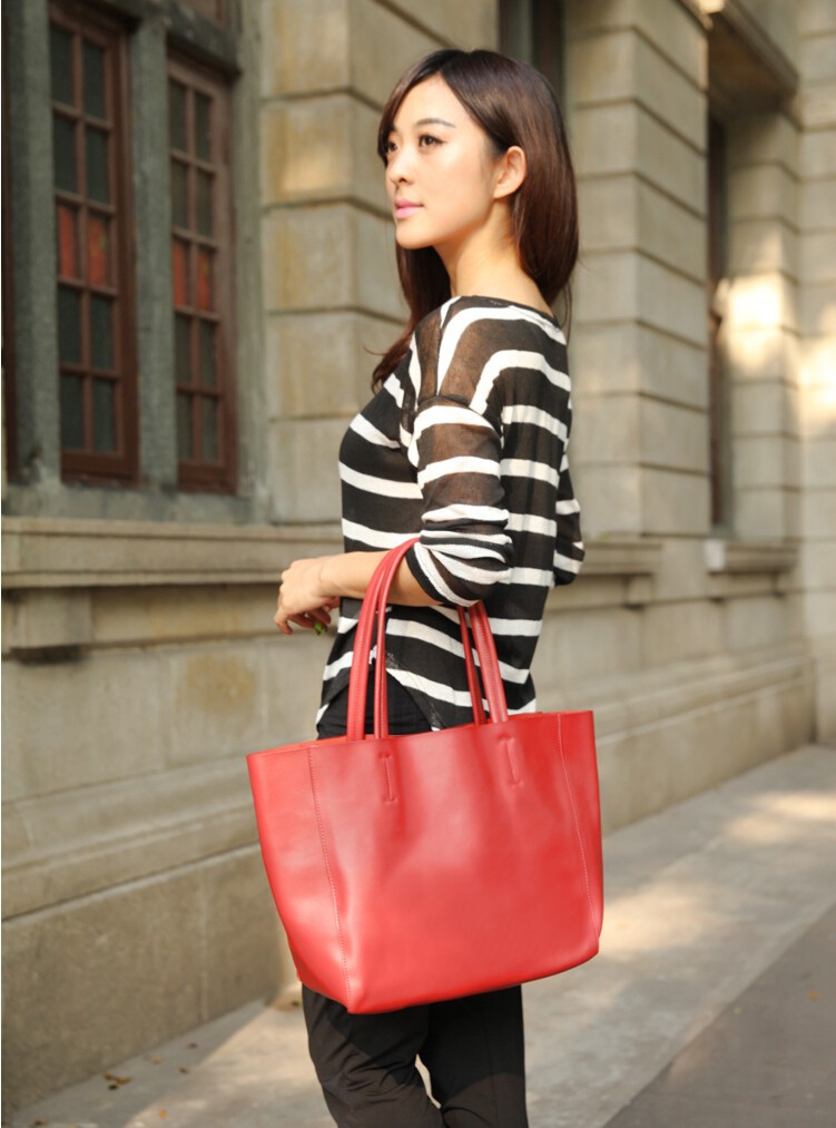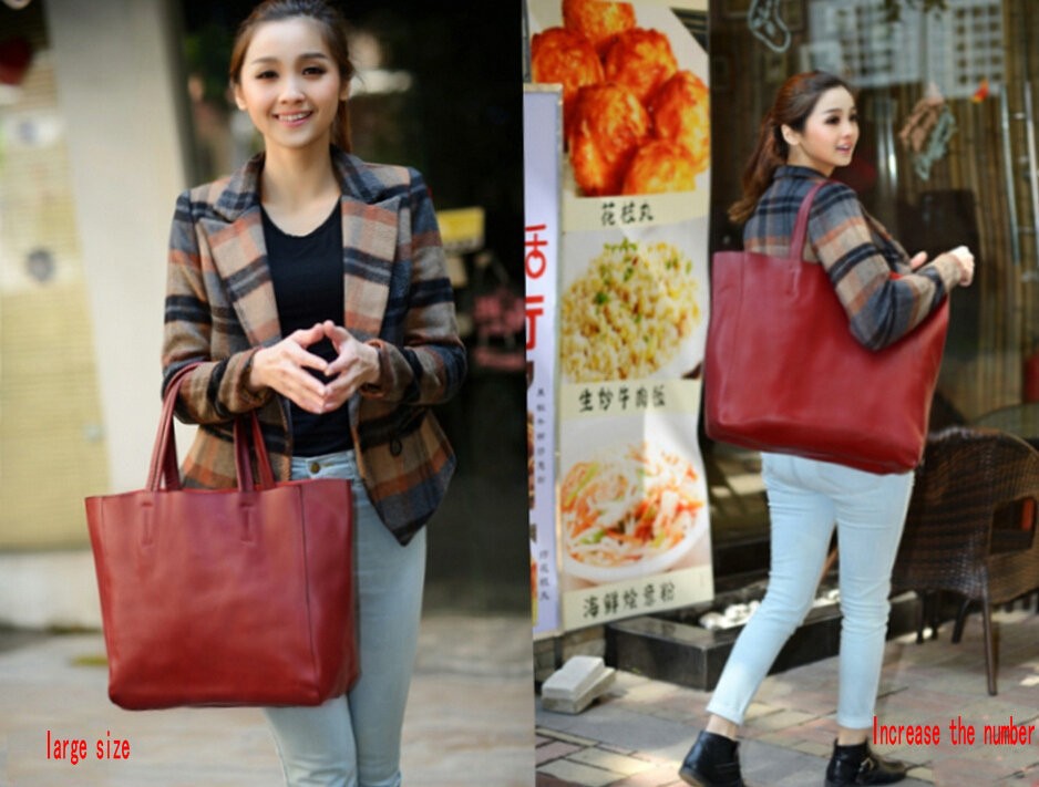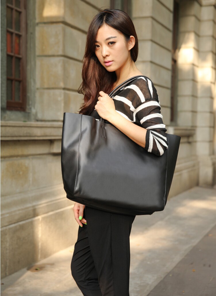 100% Genuine leather large capacity female bag Shopping bags Single shoulder bag Simple bag Fashion laptop bags FREE SHIPPING