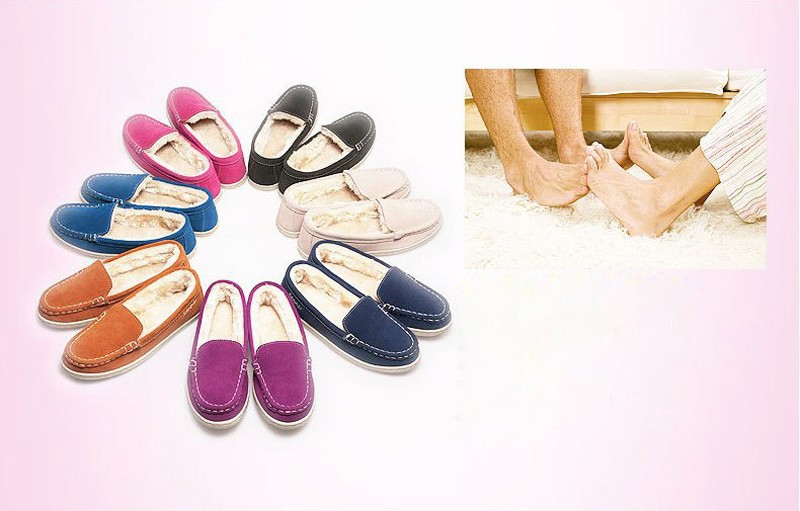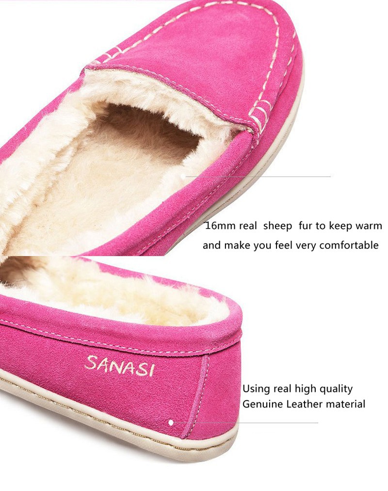 100% Sheep Fur +Genuine Leather Brand Women Shoes , 2014 Autumn – Winter New Solid Casual Females Flats 8 Colors Free Shipping