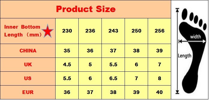 4.Plus size 35,36,37,38,39 for your choose(inner foot length for your size reference)