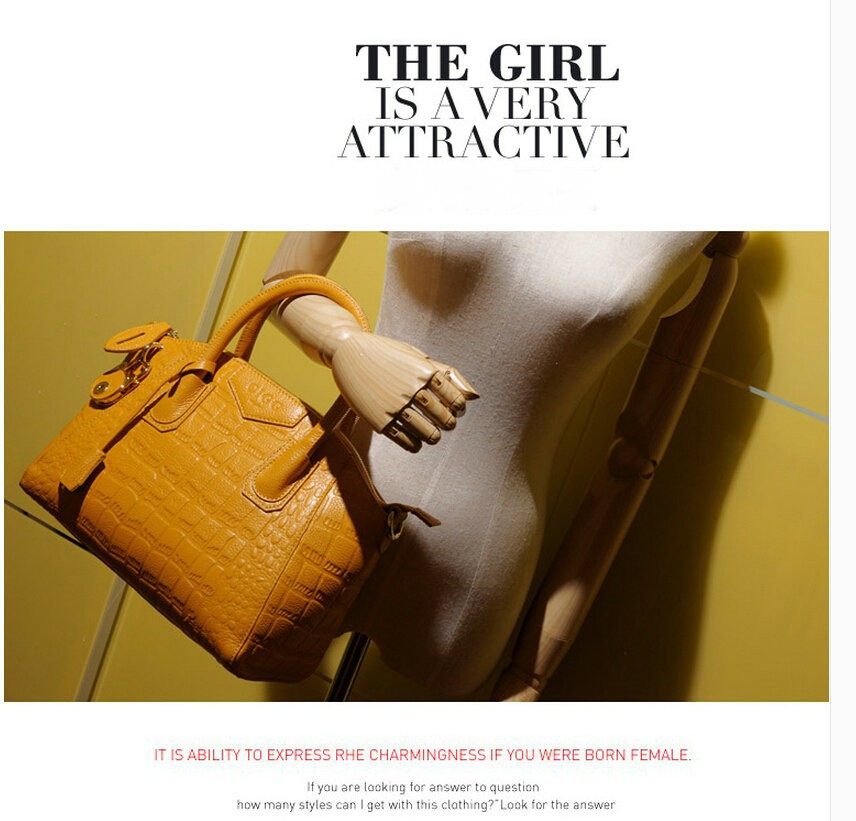 100 Genuine leather OL handbag crocodile lines inclined shoulder bag Fashion female bag Single shoulder bag