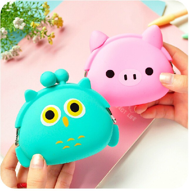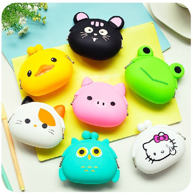 10PCS Candy Cute Silicone Coin Purses Animals Key Bag Clip Hasp Cosmetic CARTOON Wallet