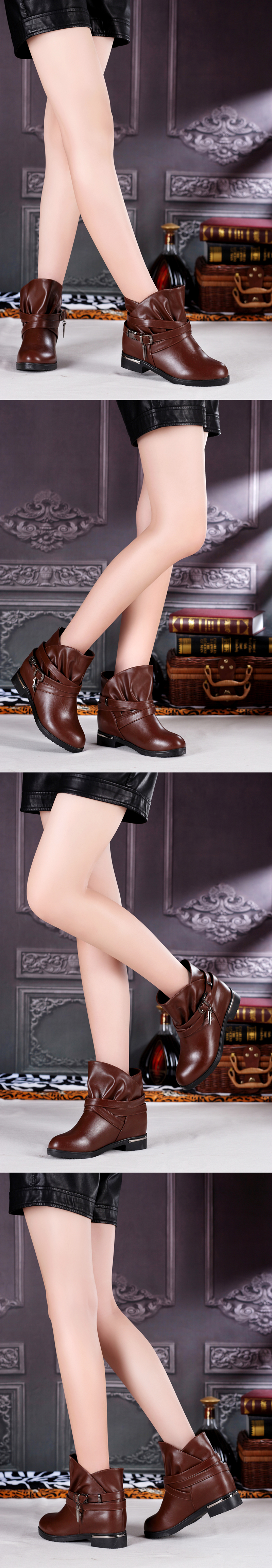 14 new fall shoes in Europe and America round belt buckle boots women’s boots in the increased leisure wild knight boots single boots