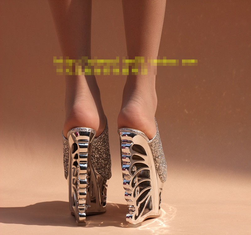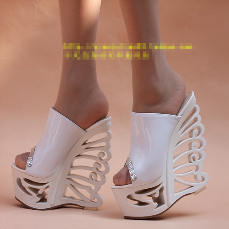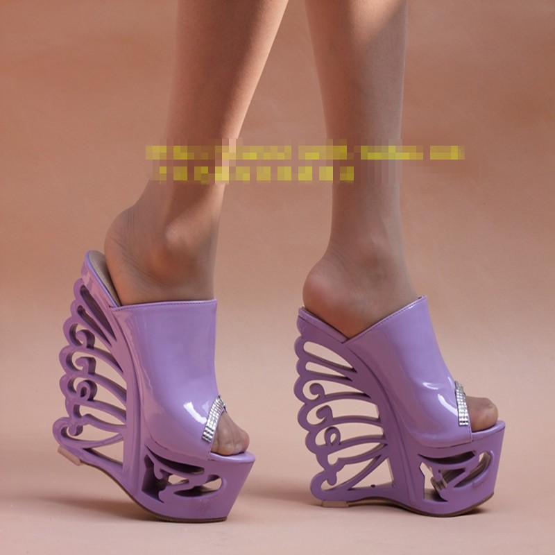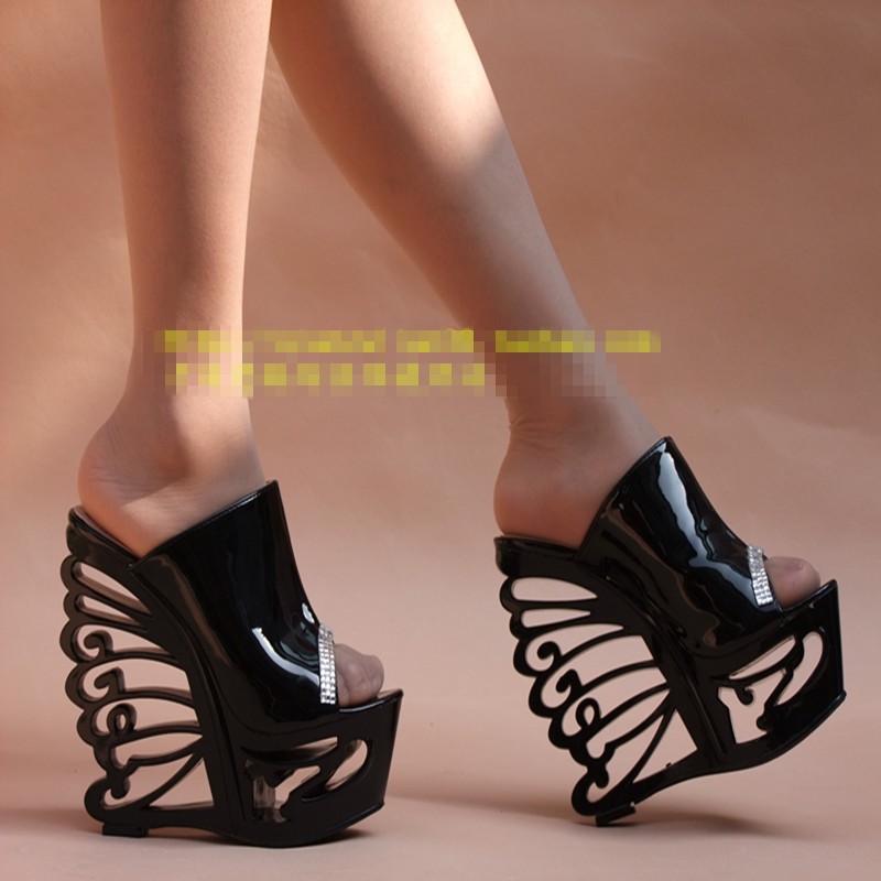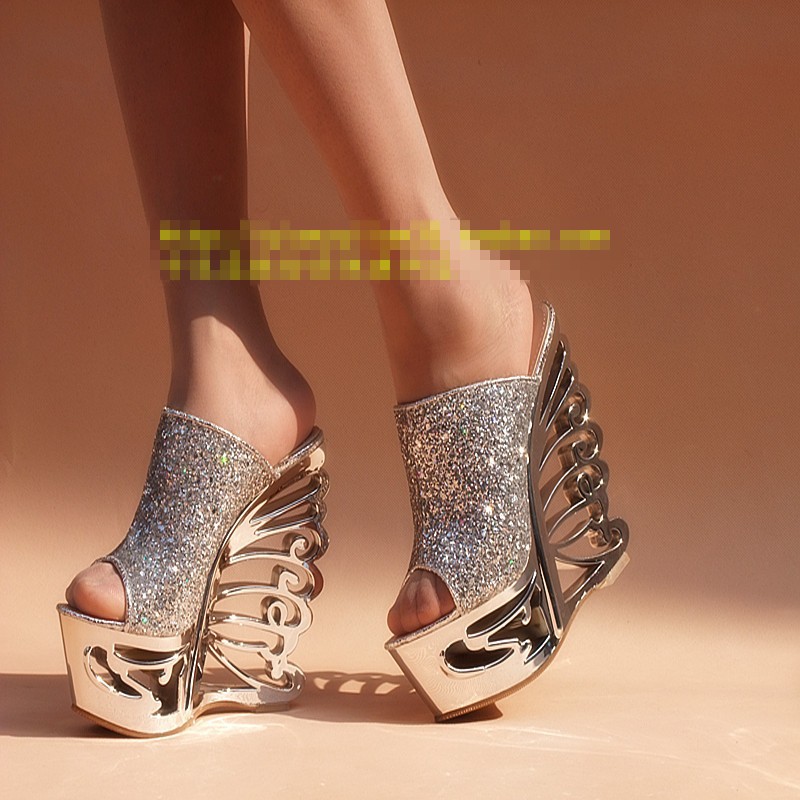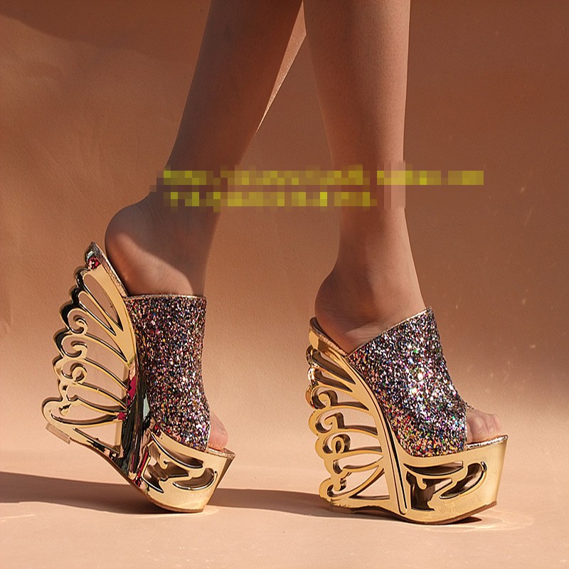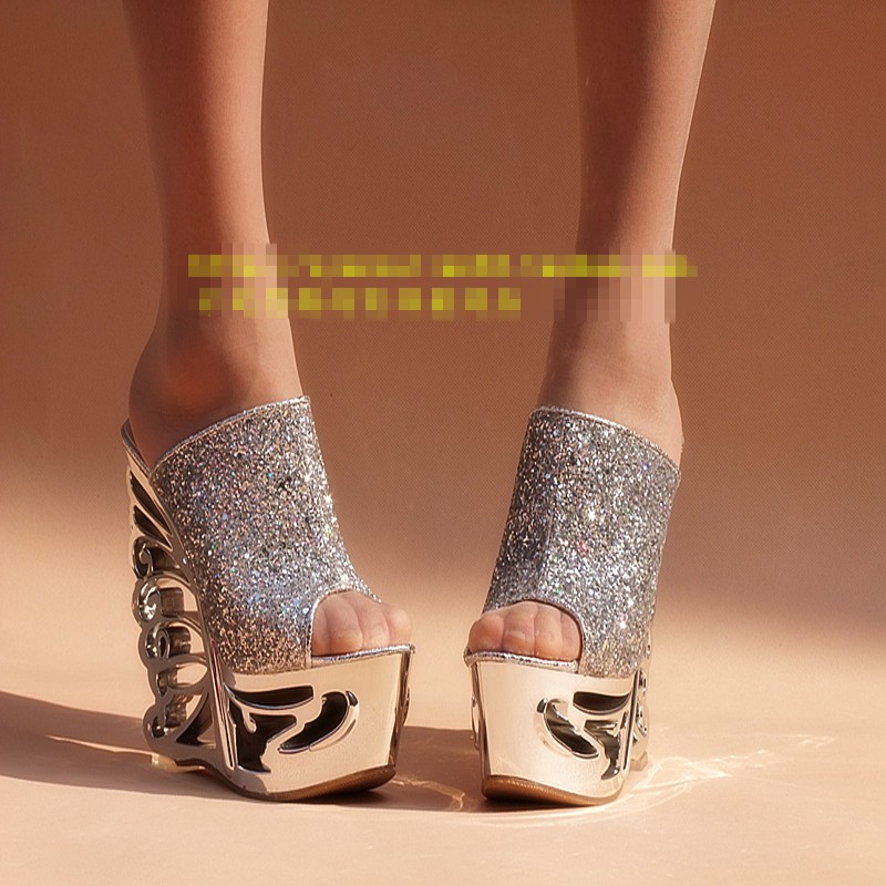 16cm bling bling princess wedges sandals glossy women’s platform shoes ultra high heels open toe cutout female sandals