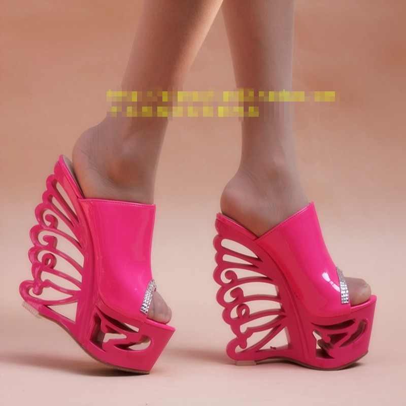 16cm bling bling princess wedges sandals glossy women s platform shoes ultra high heels open toe