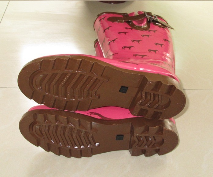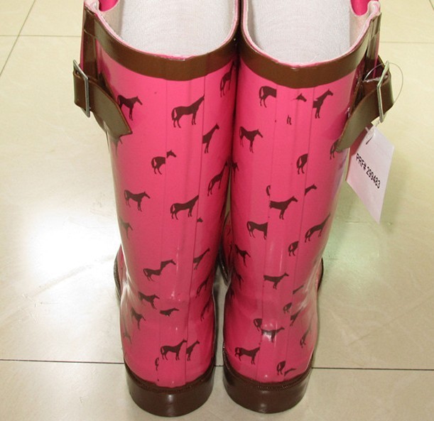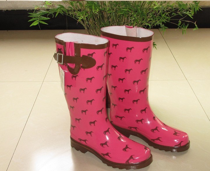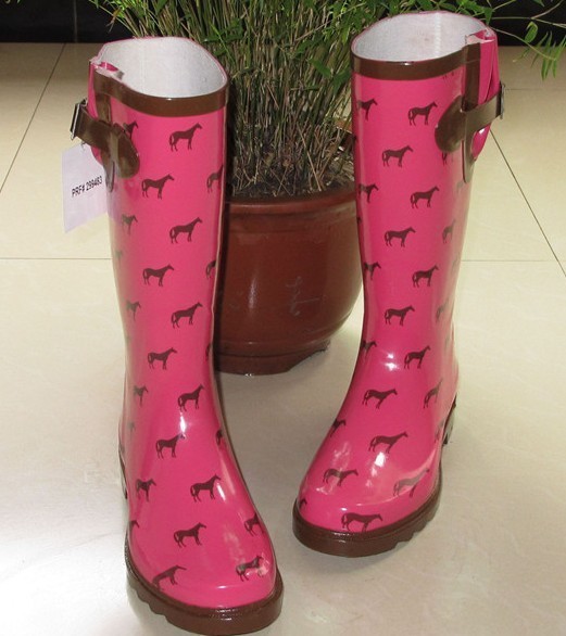 2013 Women wellingtons animal horse pattern rain boots rubber waterproof galoshoes riding boots botas