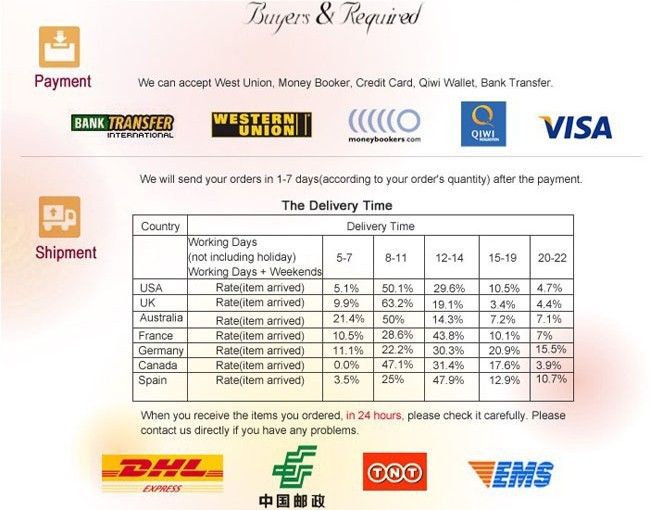 Seller ServiceOn-time DeliveryIf you do not receive your purchase within 60 days, you can ask for a full refund before order completion (when you click "Confirm Order Received" or exceed confirmation timeframe).