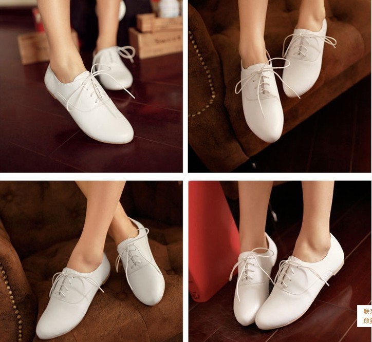 2014 autumn Genuine Leather lace casual shoes women white shoes retro fashion flats ladies shoes girls