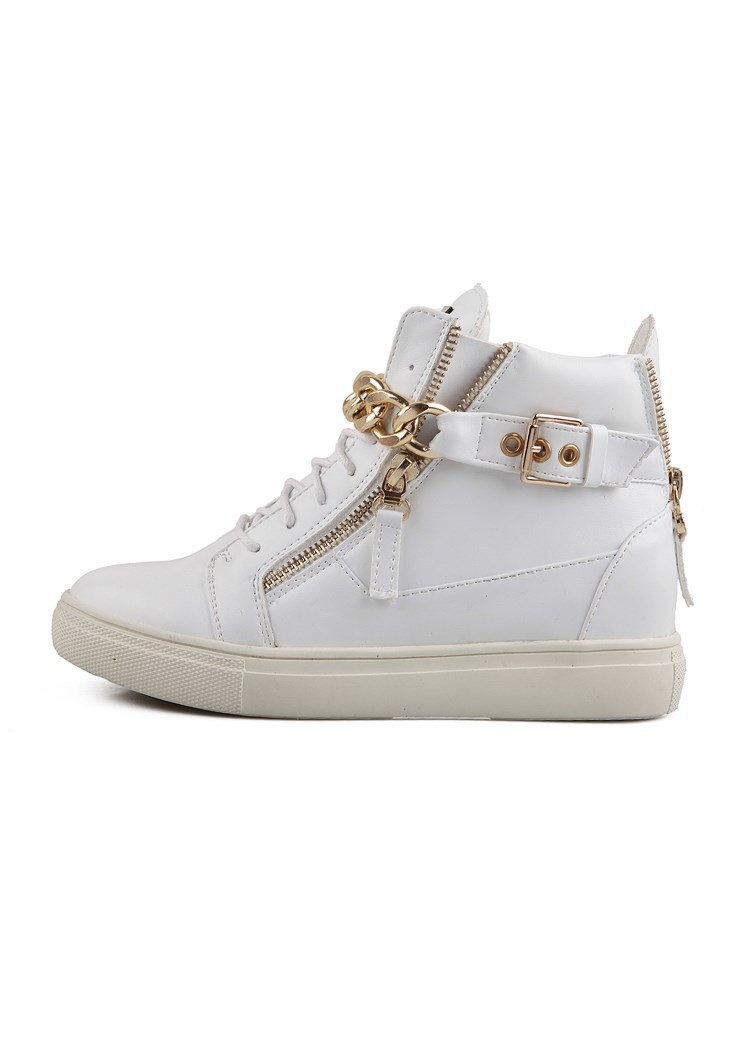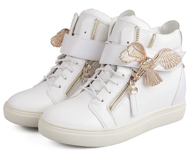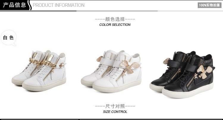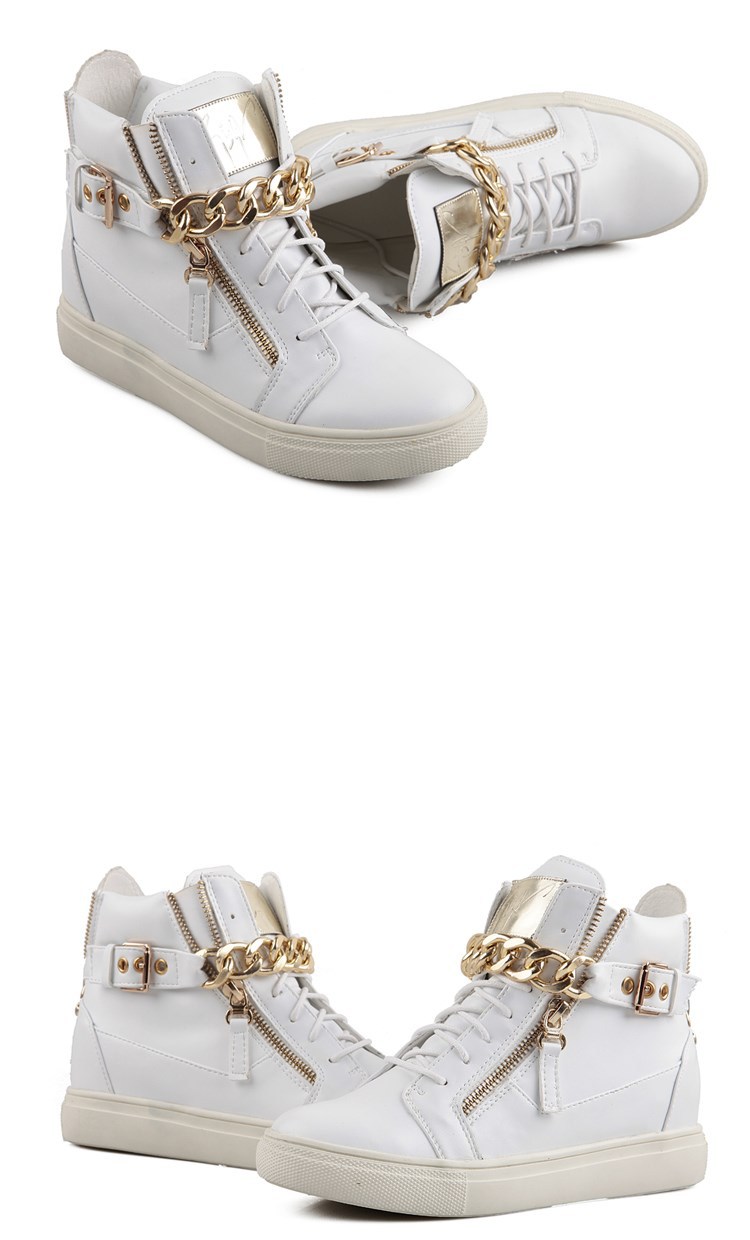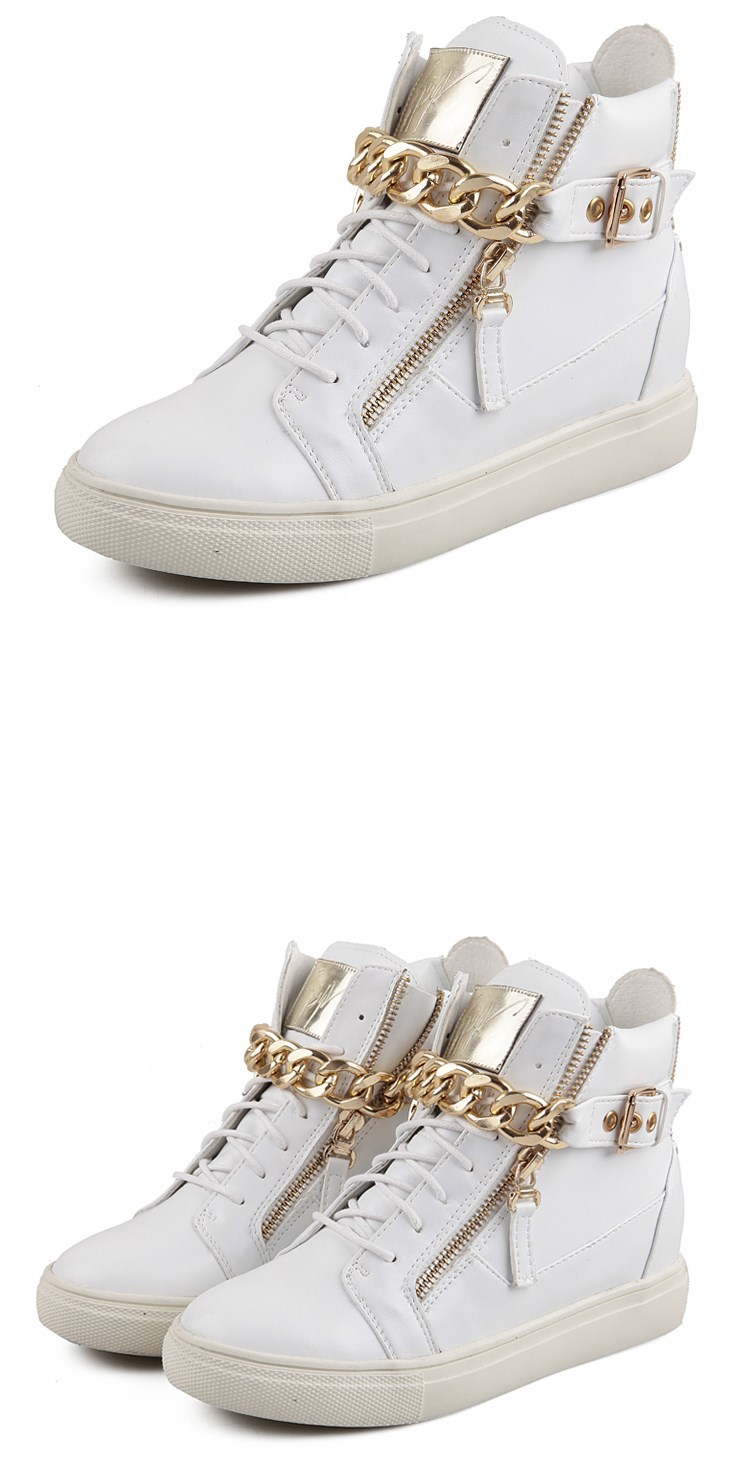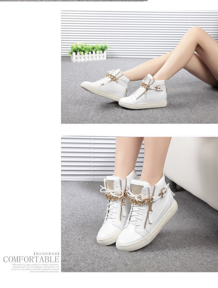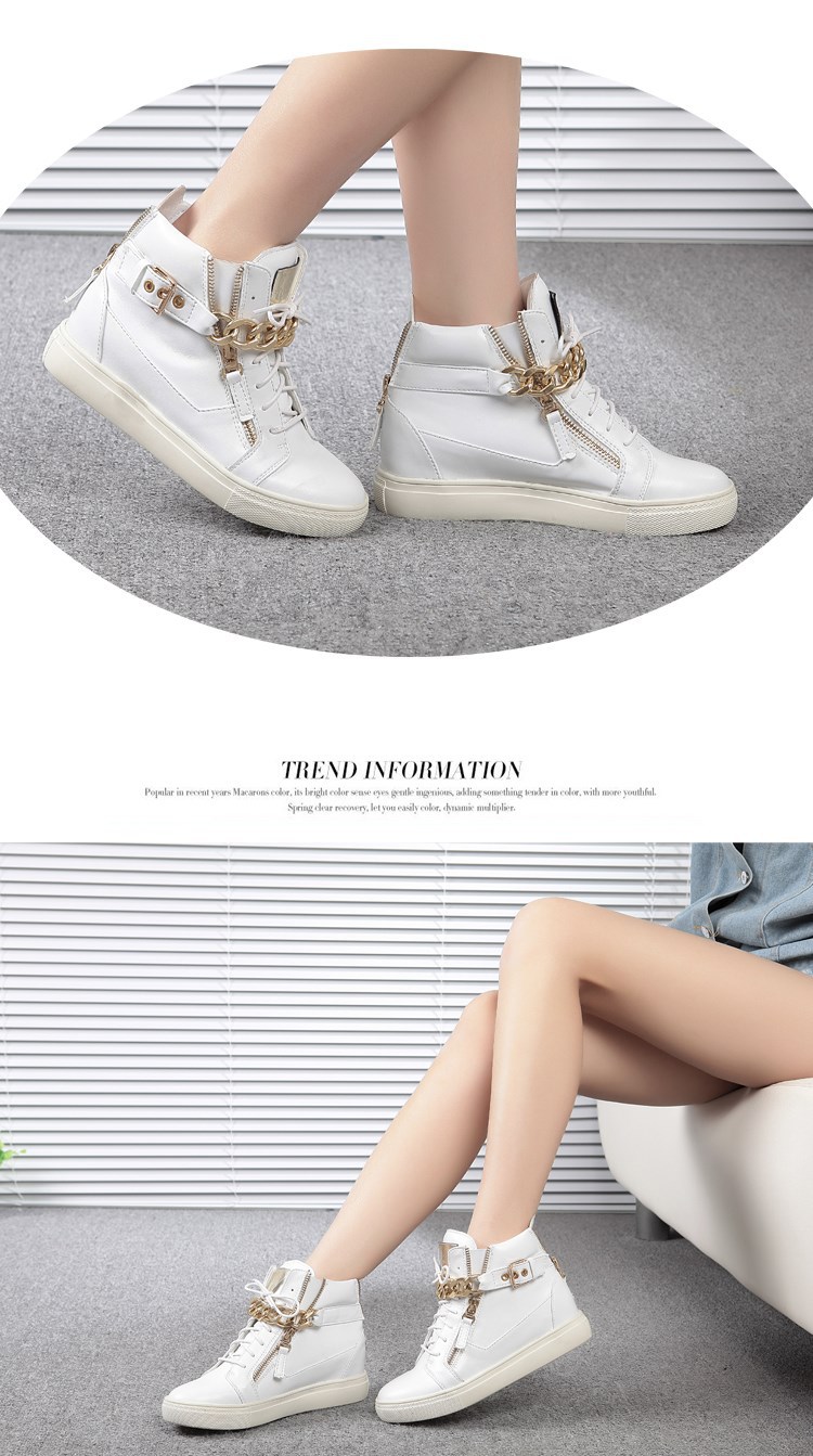 2014 Brand Genuine Leather Women Wedge High Heels Sneakers Height Increasing Casual Shoes Chain Decorative Women Canvas