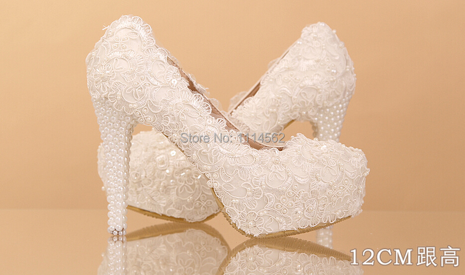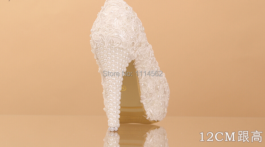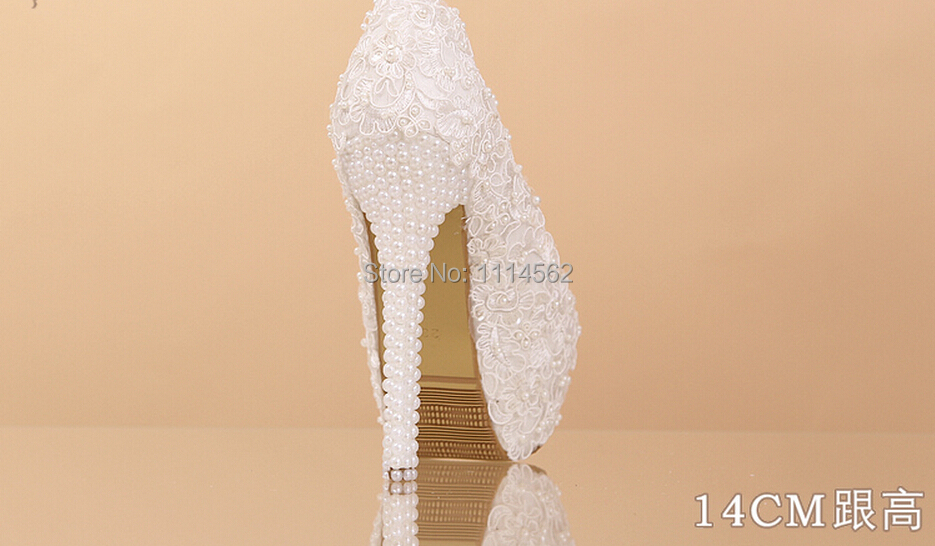 2014 Elegant White Lace Beading Wedding Shoes 12cm 14cm High Heels Bridal Dress Shoes Bridesmaid Shoes