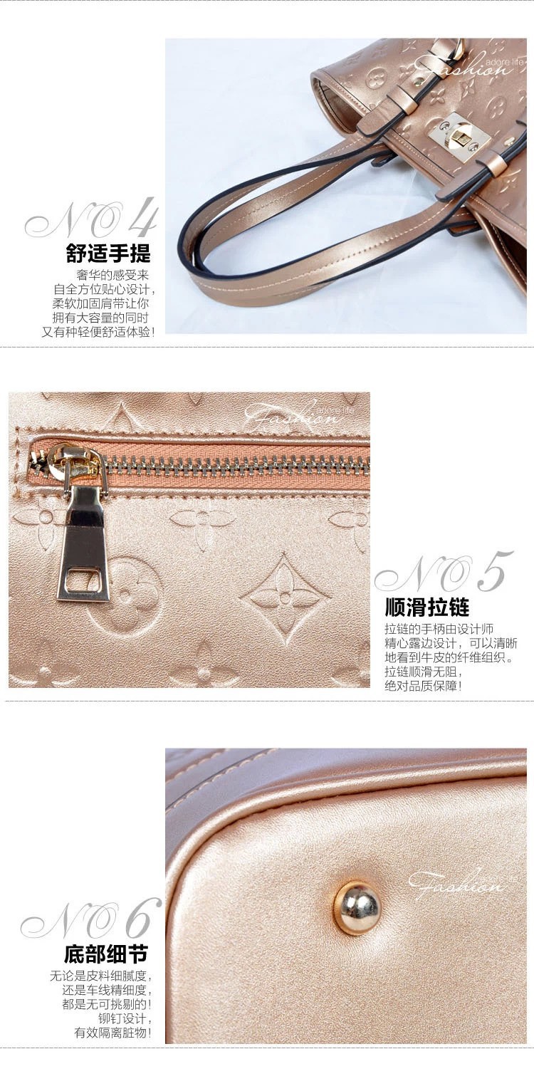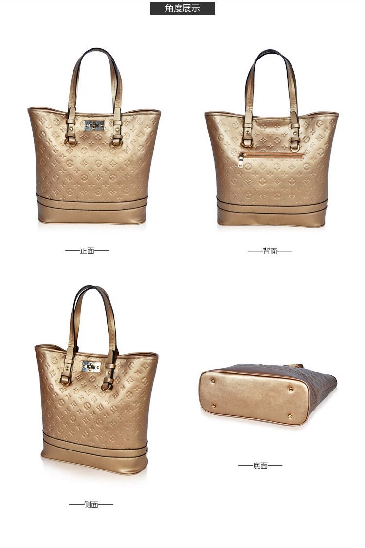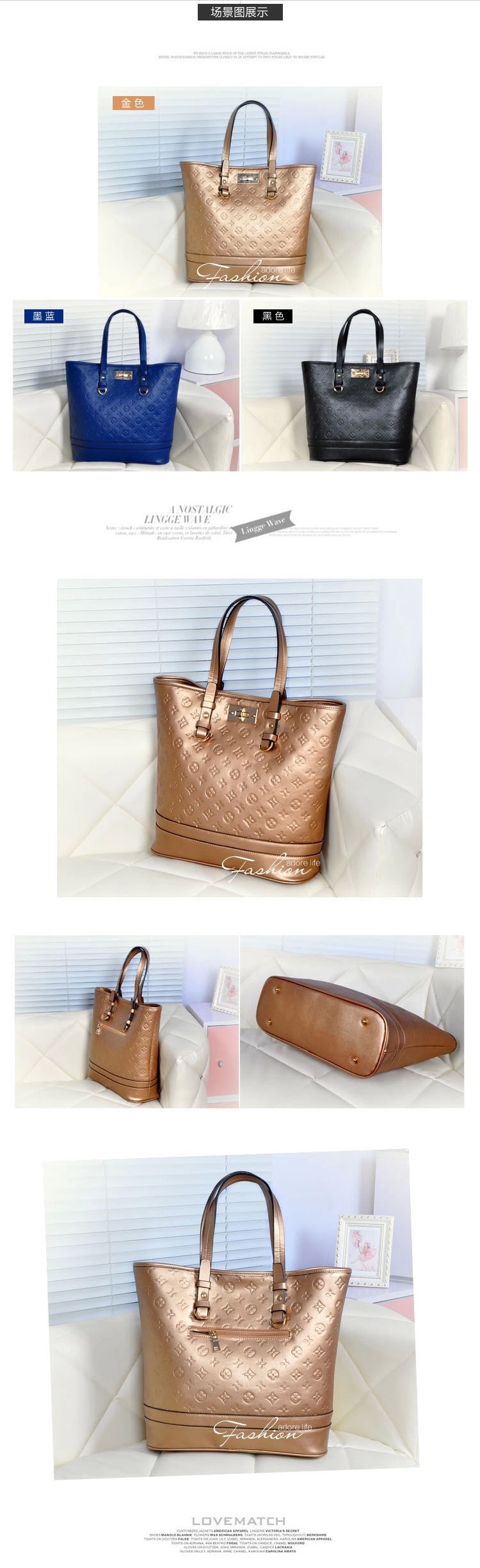 Material: Leather Cortical features: cow split leather Processing methods: soft surface Style: European and American style Style: handbag, shoulder bag Luggage shape: square section vertical Strap root number: double root Openings way: Magnetic Hardness: Soft Popular elements: Embossing Pattern: solid Package internal structure: cell phone pocket Lining Material: Polyester Ask carry parts: the soft Outer bag types: three-dimensional bags Bag Size: Large Color: blue, black, bronze Specification: width: 33cm, height of about: 33.5cm, thickness: 13cm, hand: 18cm Material: high quality leather Function: shoulder, diagonal Structure: cell phone bags, document bags, zipper pocket Weight: 1.5KG Tips: different measurement methods, the error is 1-4cm within
