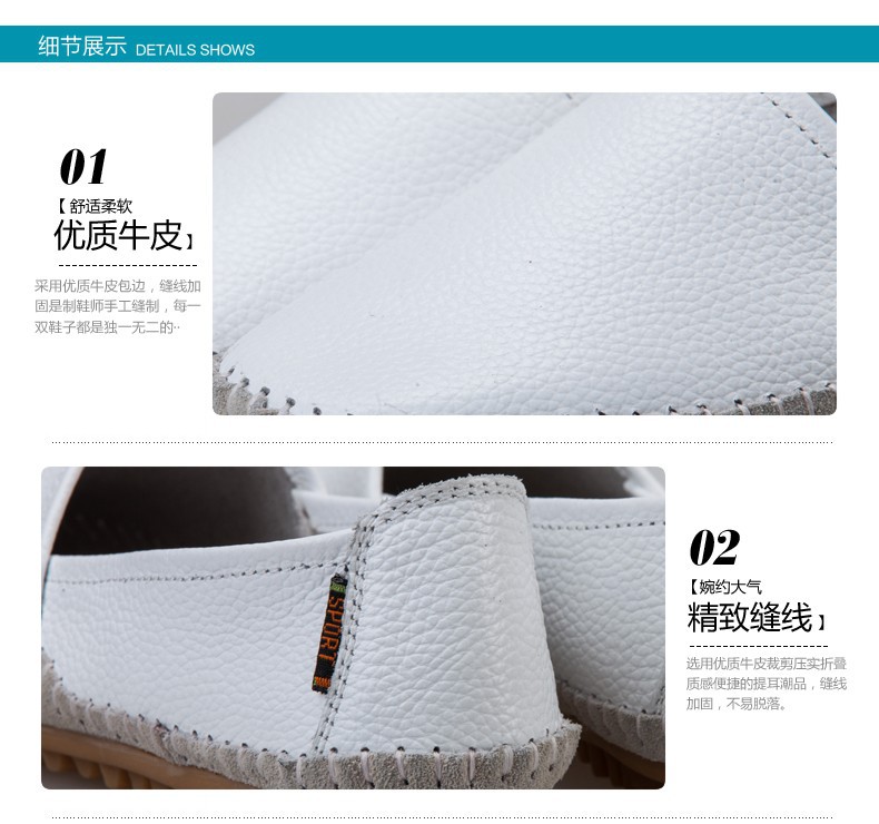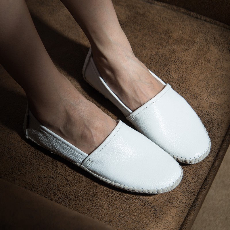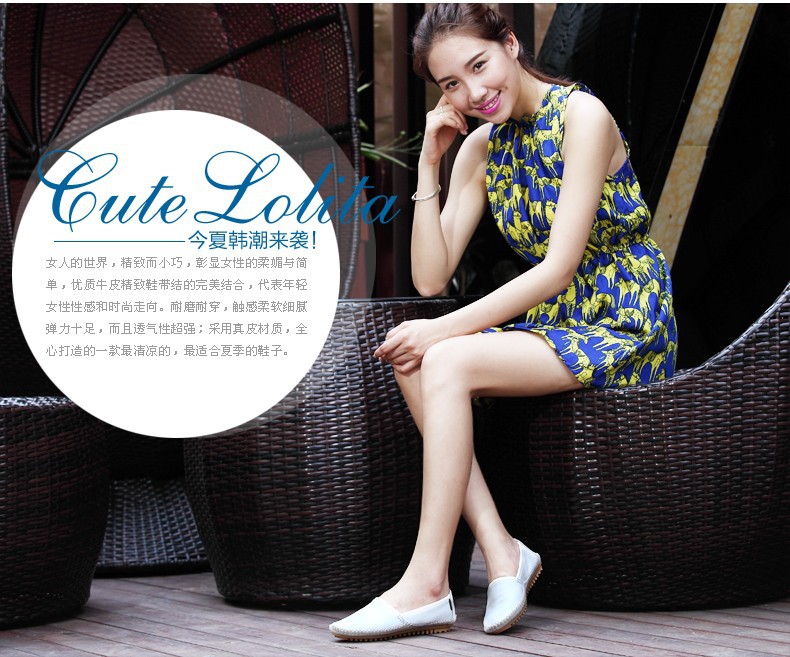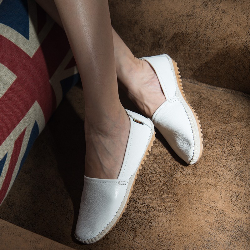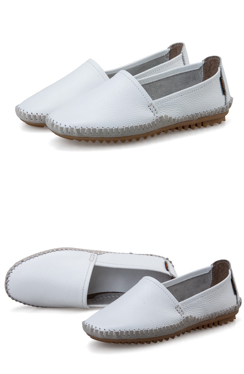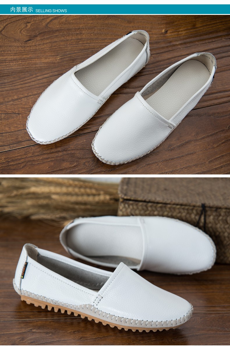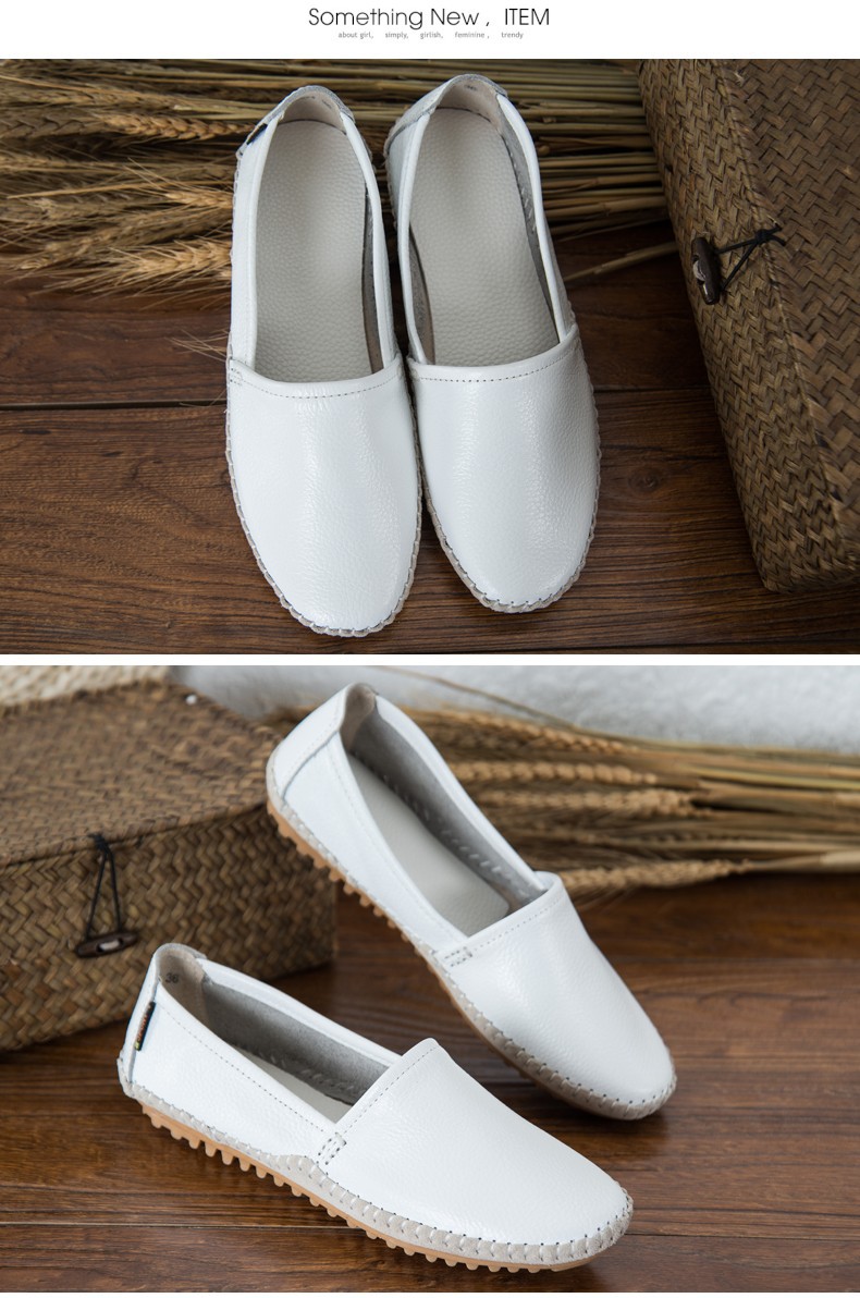 Hot 2014 New Fashion Ladies Cute Genuine Leather Ballet Casual Womens Shoes White Loafers Low Heel Comfort Flats 5