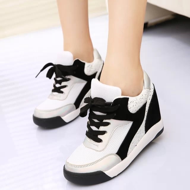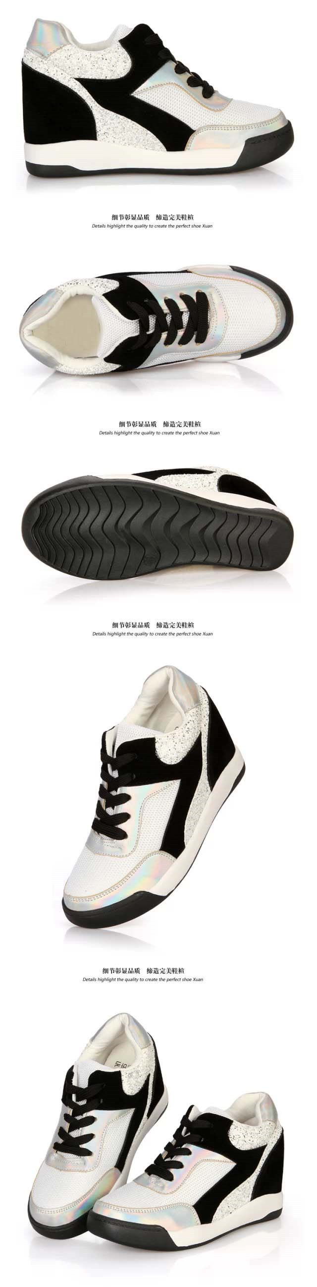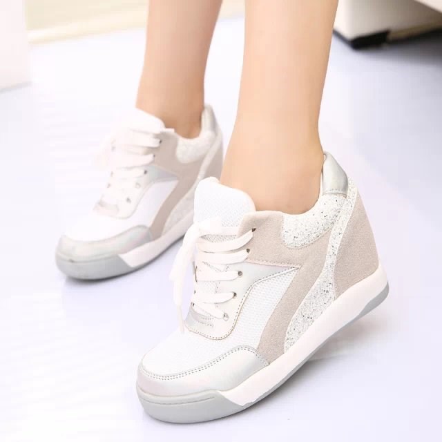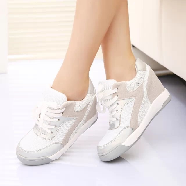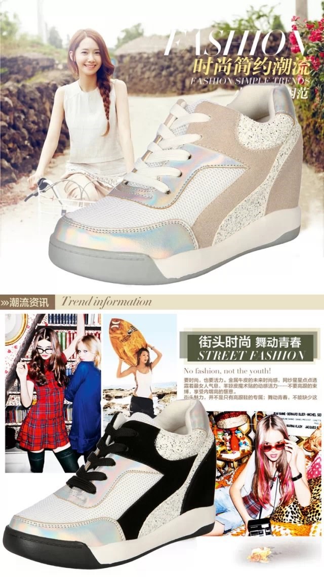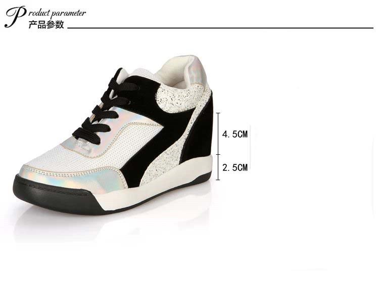 2014 Fashion Genuine Leather Women’s Wedge High Heels Sneakers Breatherable Net Canvas Casual Single Shoes Height Increasing