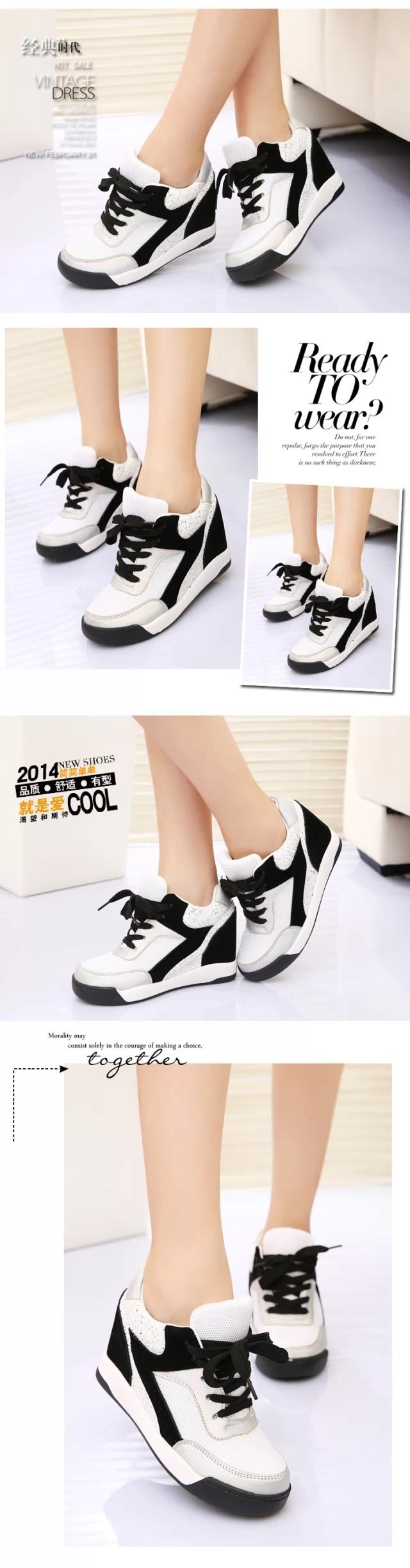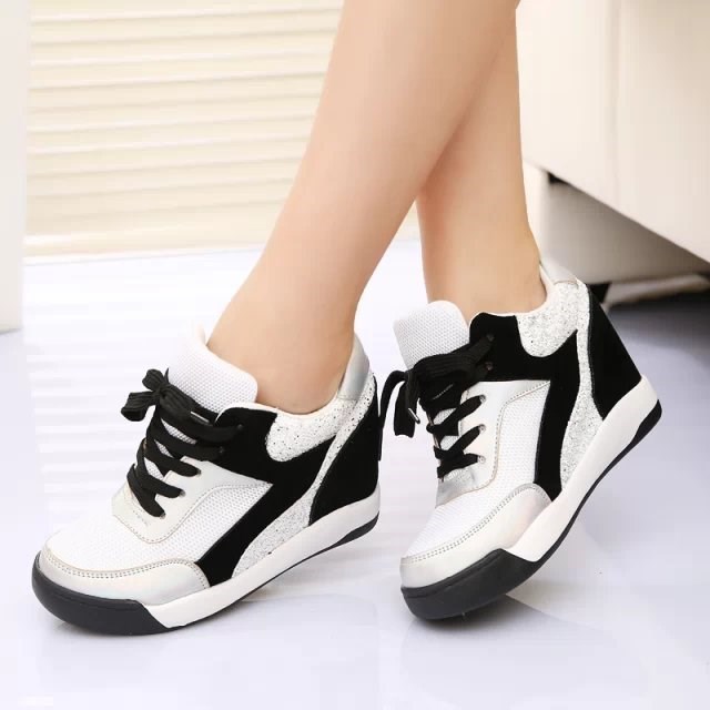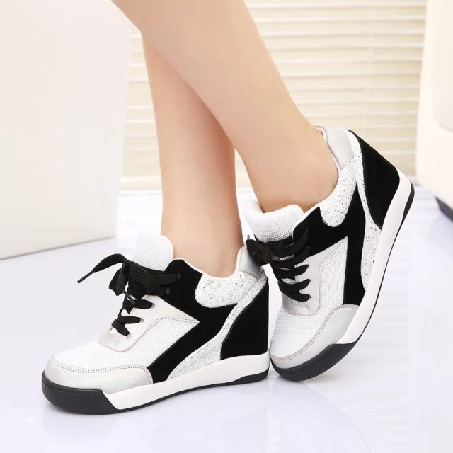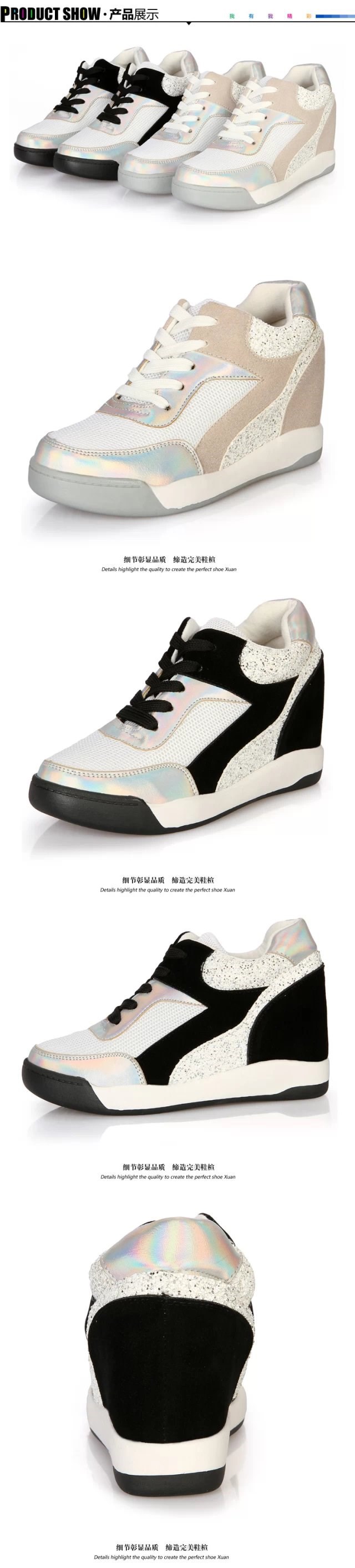 2014 Fashion Genuine Leather Women’s Wedge High Heels Sneakers Breatherable Net Canvas Casual Single Shoes Height Increasing