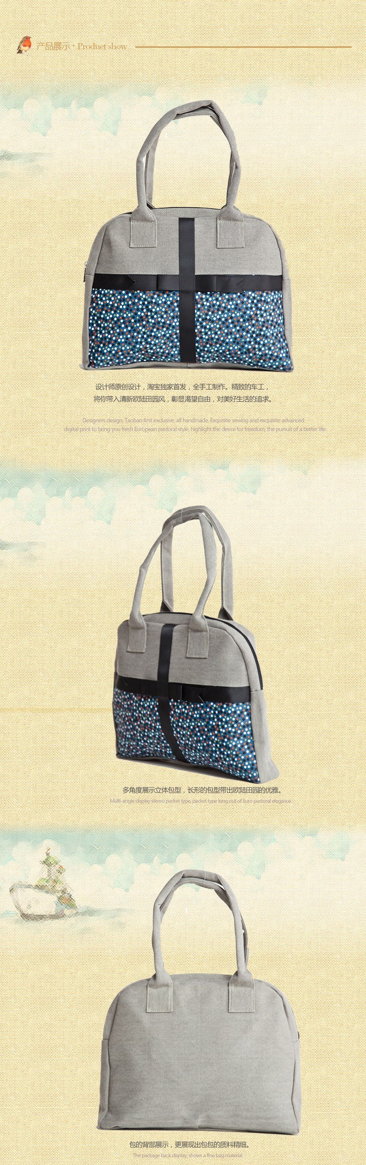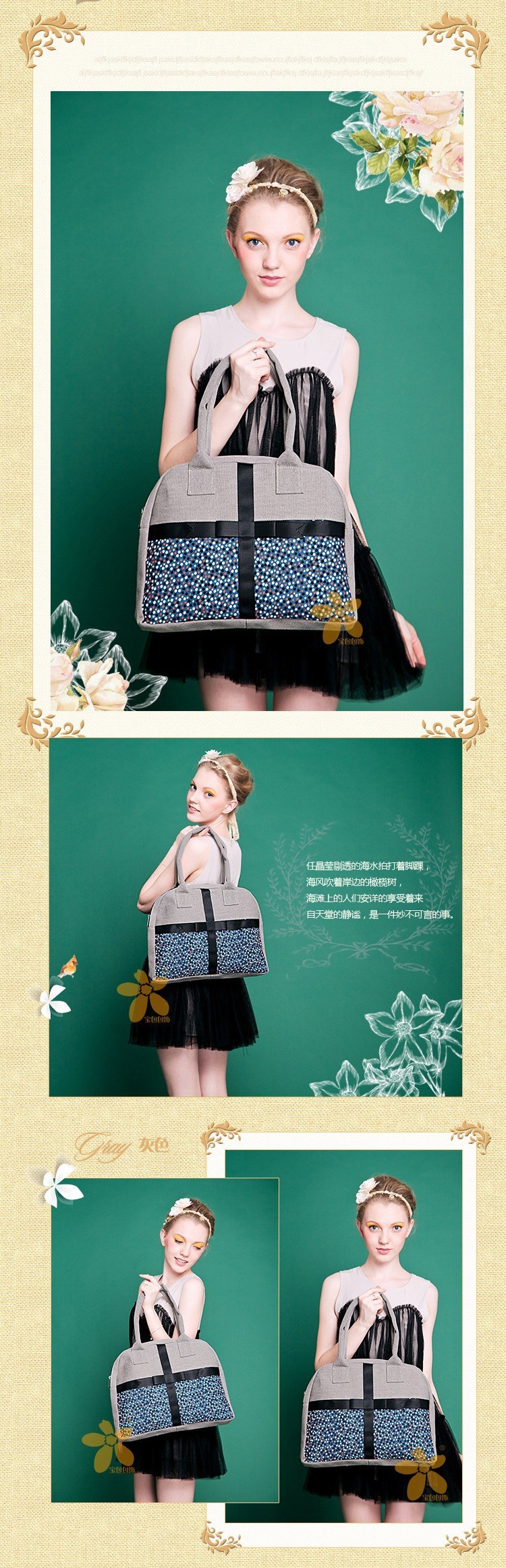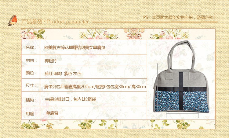 2014 Fashion Summer Country Style Fabric Woman Messenger bag Exquisite Applique Lady Handbag Cute Shopping bag Free shipping