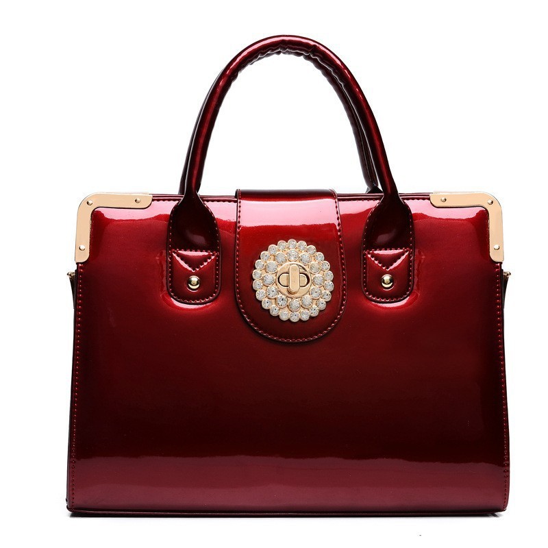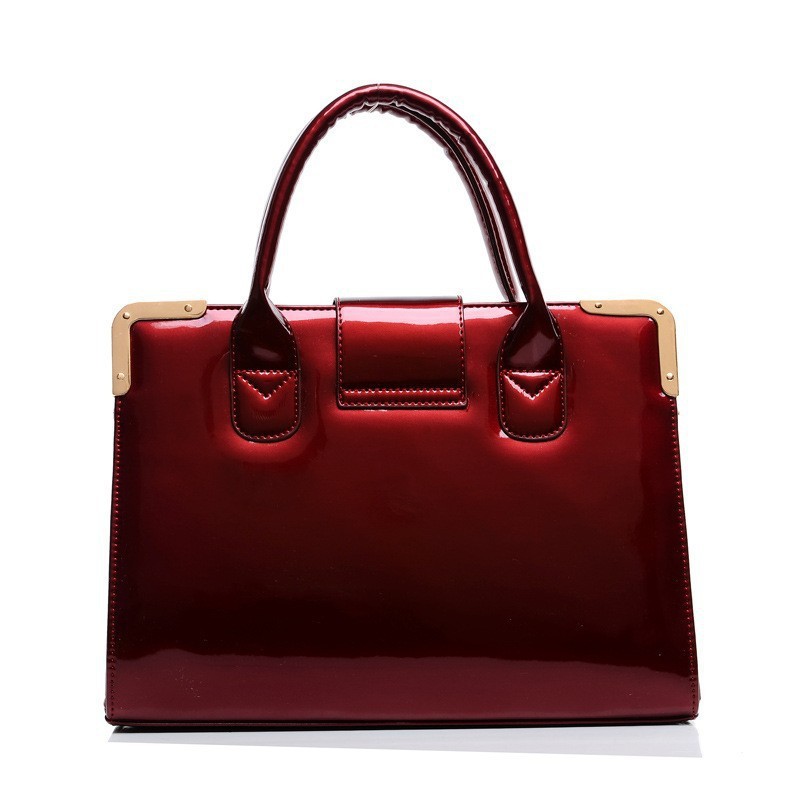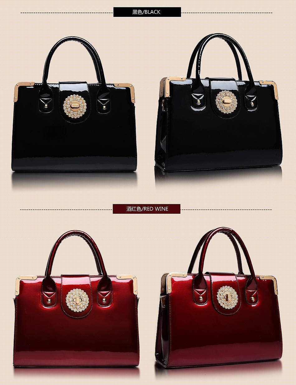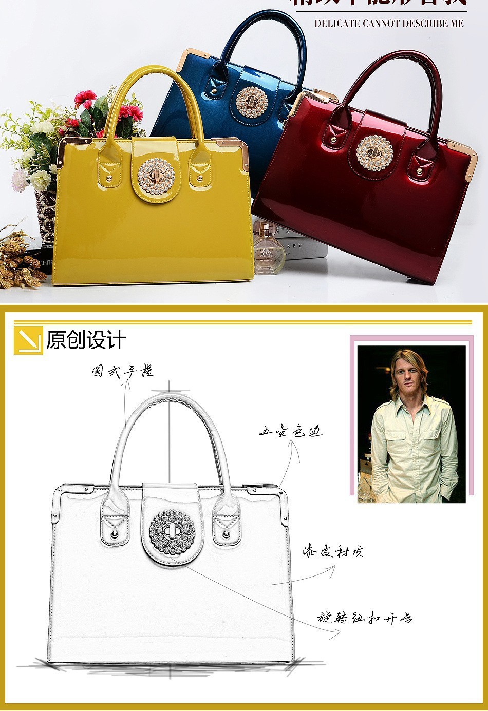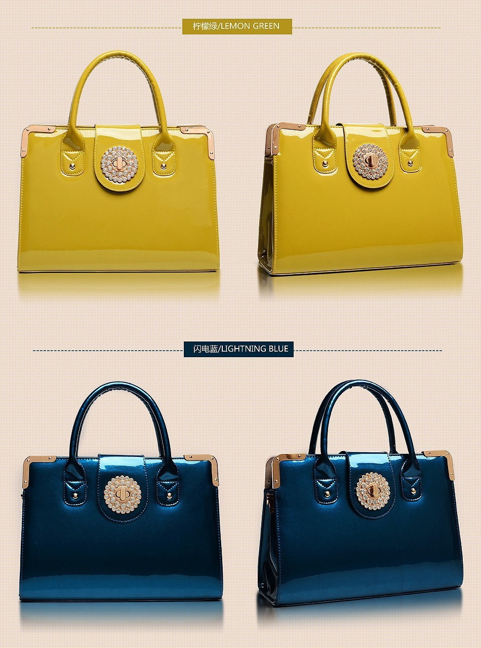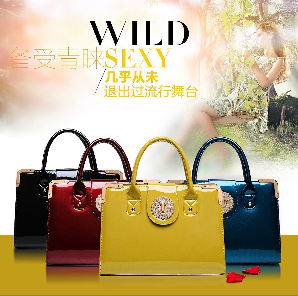 2014 free shipping original big-gas field design genuine leather black and bule and red colors bright surface women handbags