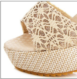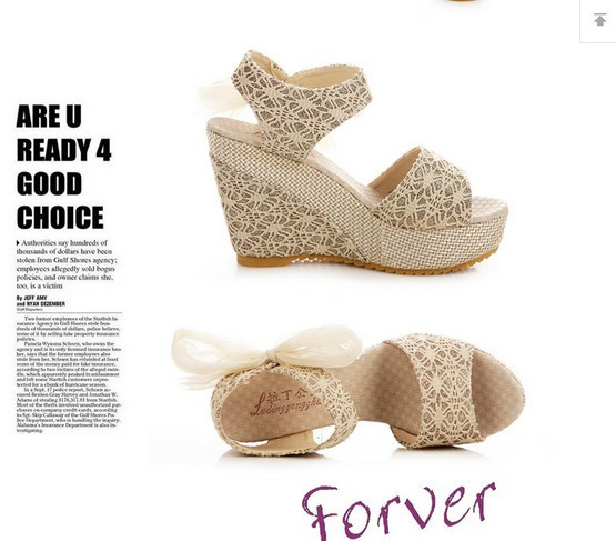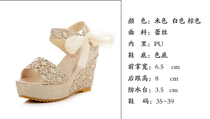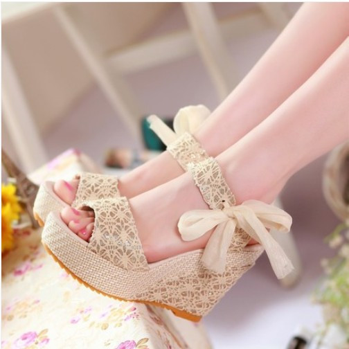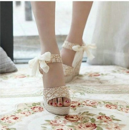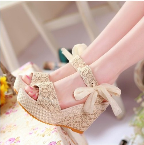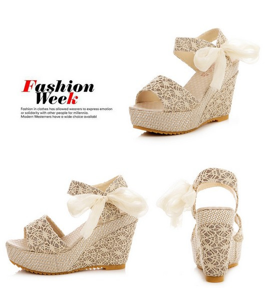 2014 hot summer sandals Roman fish head thick crust muffin spell color bow tie lace slope with high-heeled shoes free shipping