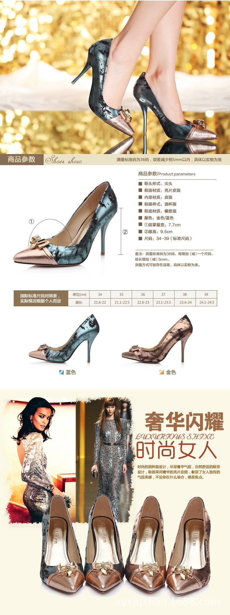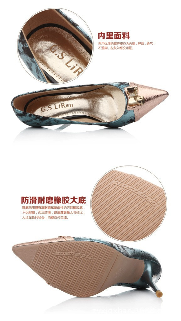 2014 In the spring of the new luxury Genuine Leather women’s shoes pointed high-heeled shoes in Europe and America