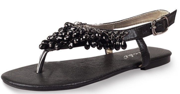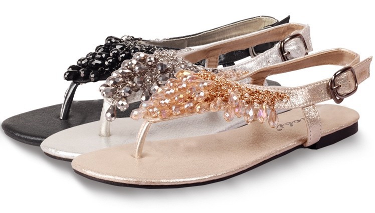 2014 korean bohemian lady fashion beading sandal flat heel flip flops women summer comfort shoe large
