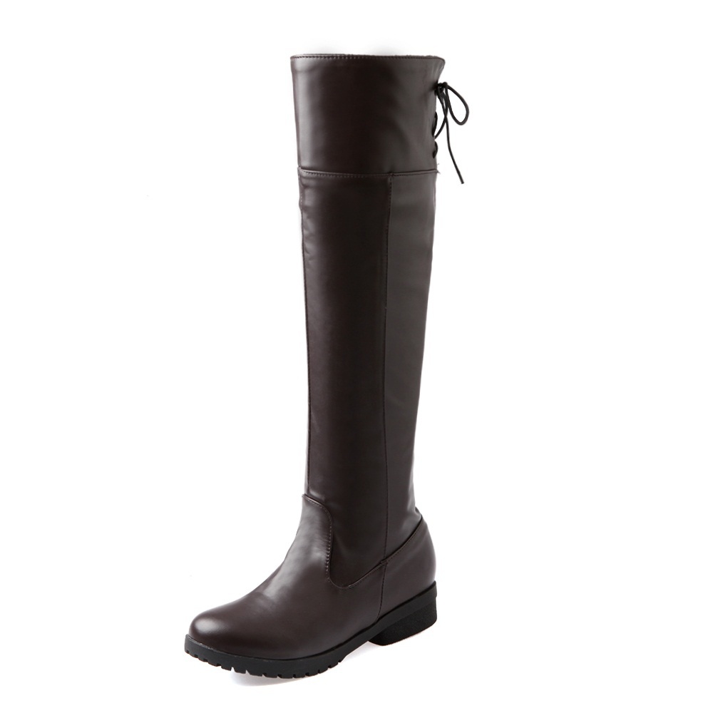 2014 ladies sexy women’s fashion knee high boots long boots low heel shoes autumn knight boots pu material big size 34-44