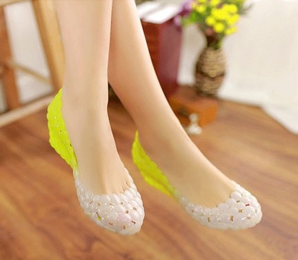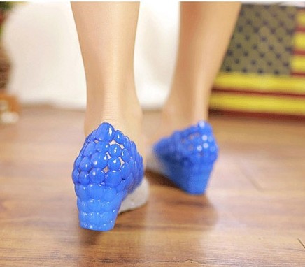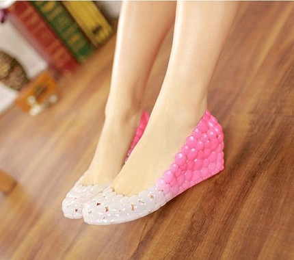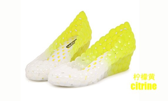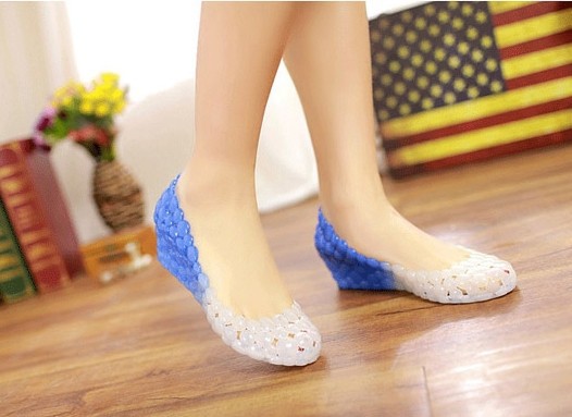 2014 lady cut out rain shoe wedges jelly sandal double color women high heel pumps beach
