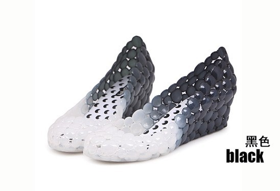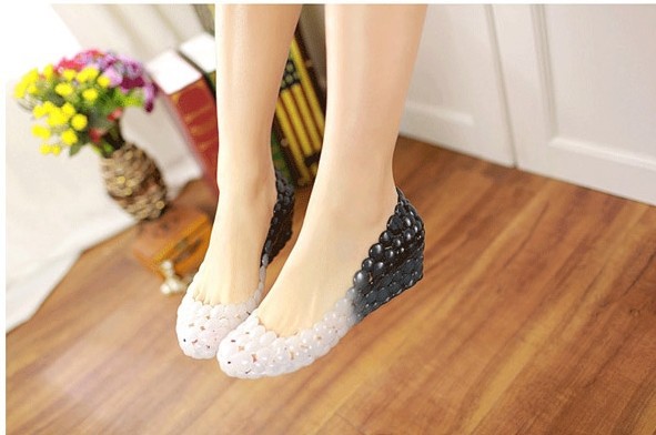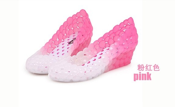 2014 lady cut out rain shoe wedges jelly sandal double color women high heel pumps beach sandal 36-40 free shipping