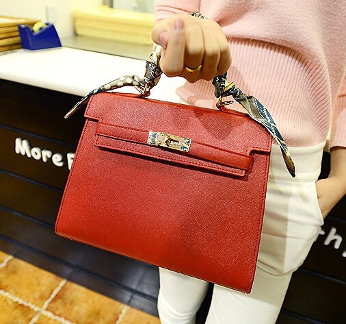 2014 new 8 colors purple blue lady tote and shoulder bag solid woman brand handbag 28CM bag with scarf and lock free shipping