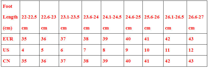 Shoe size table( Please select your correct shoe size!)