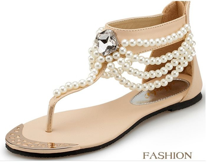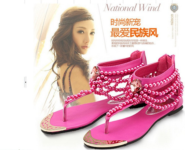 2014 New Arrival Big Size 35-40 Blue Apricot Pink Beading Fashion Sweet Casual Women Girls Sandy Beach Summer Flats Sandals L487