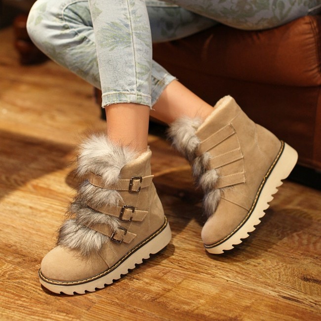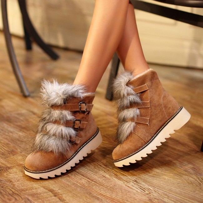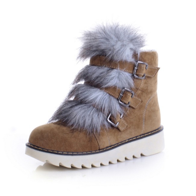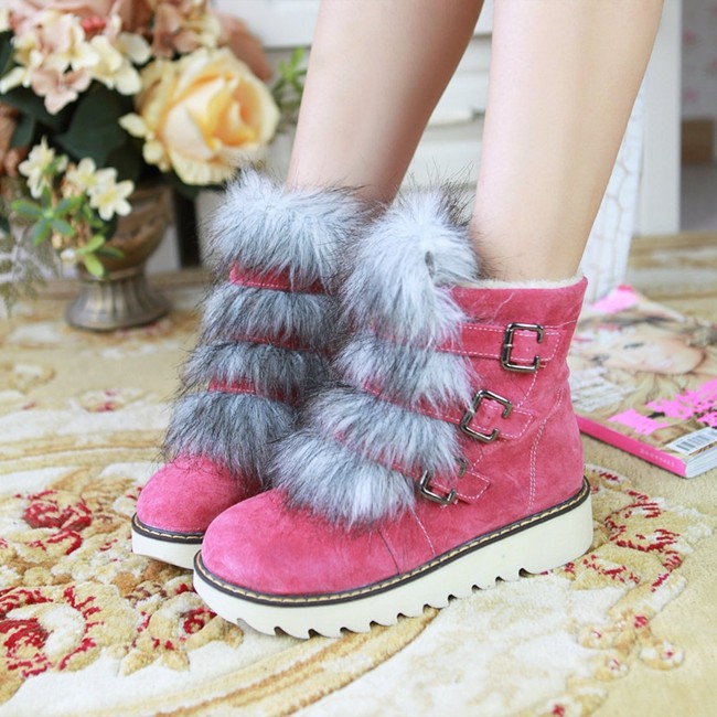 2014 New Arrival Black Yellow Pink Beige Buckel Fashion Sweet Warm Fur Femal Women Winter Snow