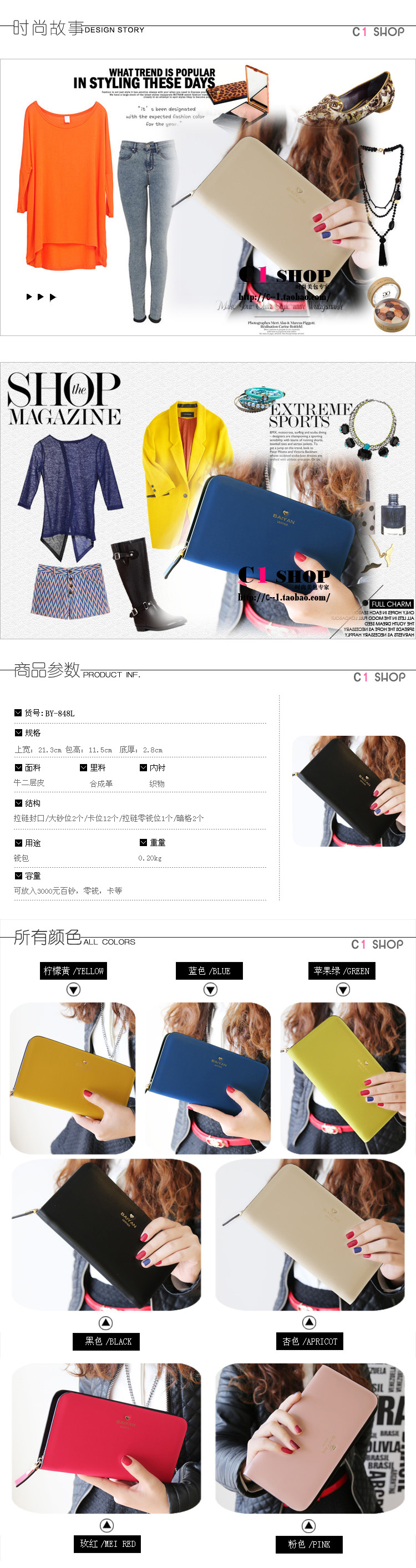 2014 new arrival fashion high-end genuine leather pure color women long style wallets women’s clutch free shipping