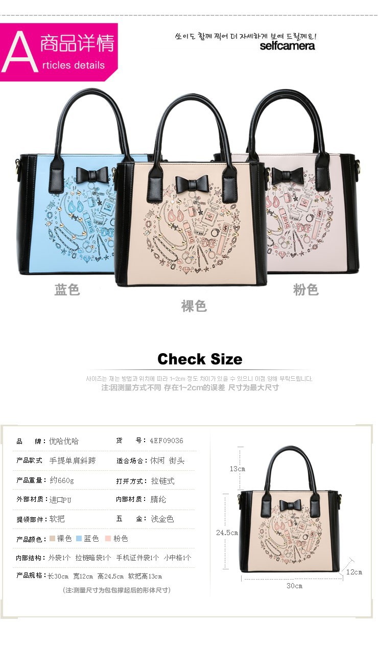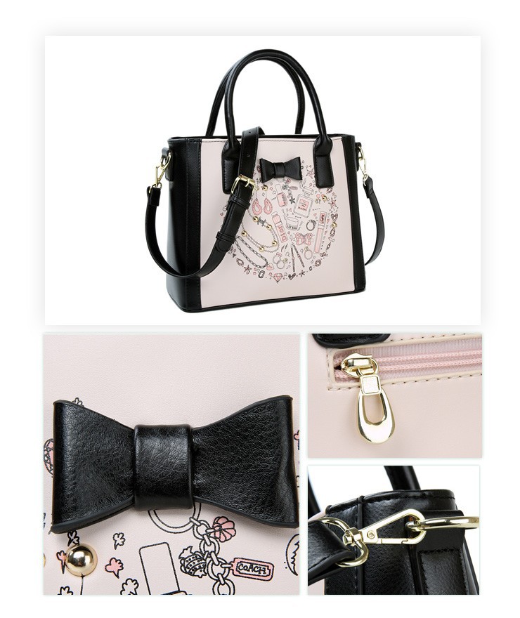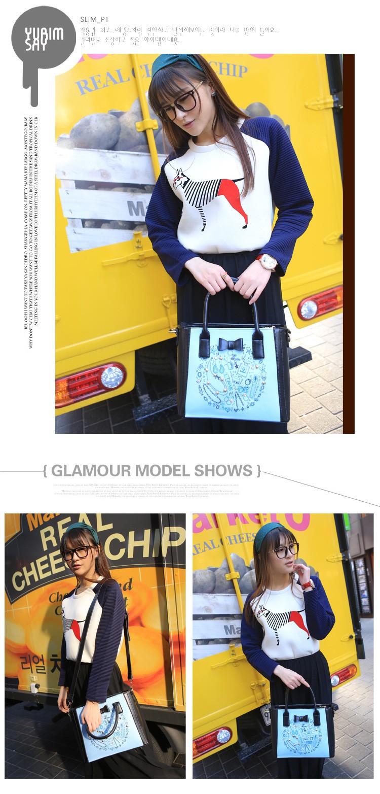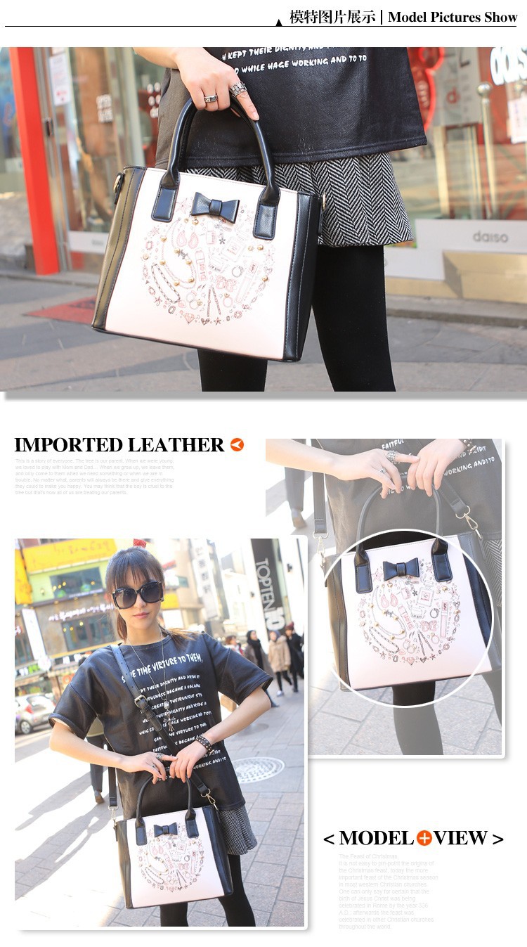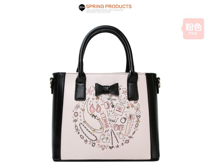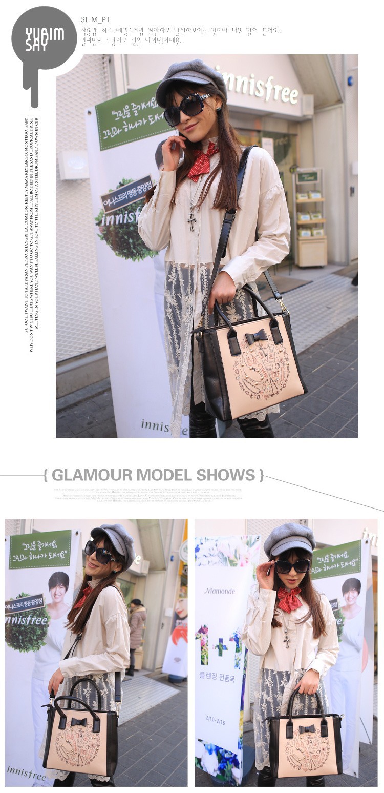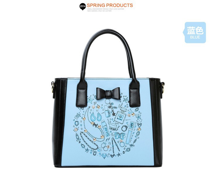 2014 New Arrival Fashion Woman Shoulder Bag Print Square Handbags Bow Decor PU Leather Messenger Bags Three Colors