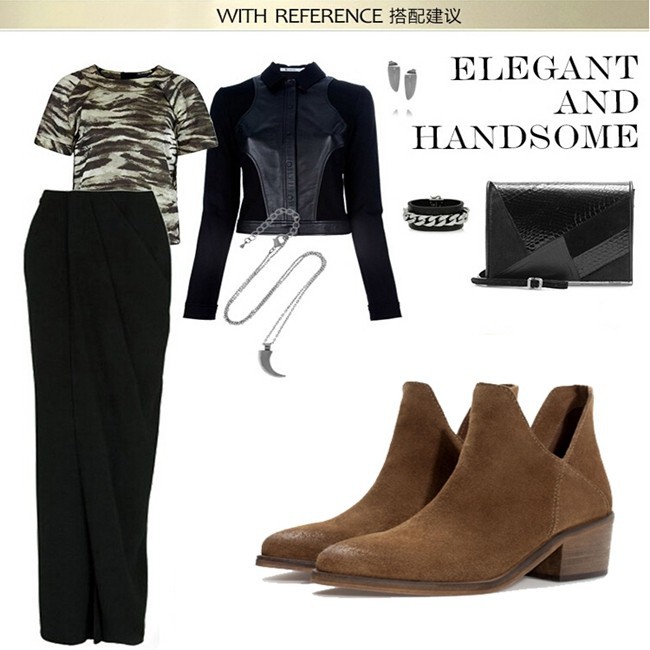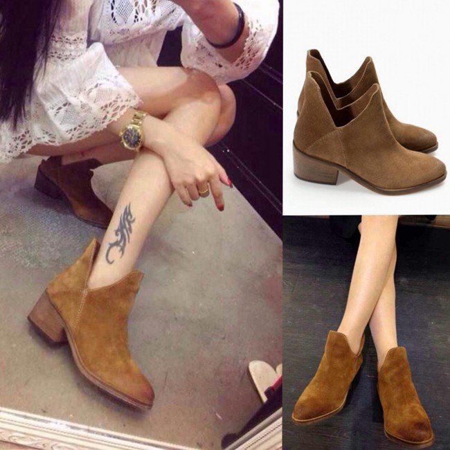 2014 New Arrival Genuine Leather Big Size 34-40 Brown Pointed Toe Fashion Casual Womens Girls Spring Autumn Martin Boots X703