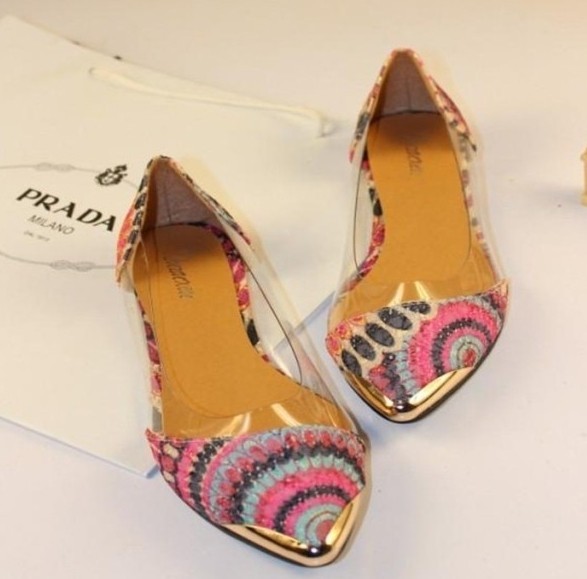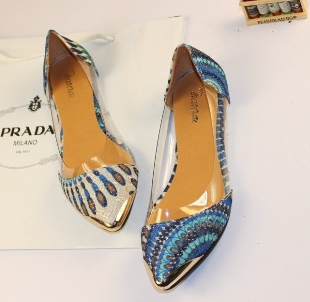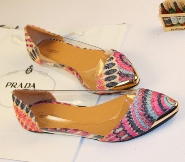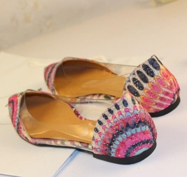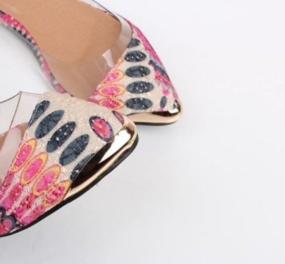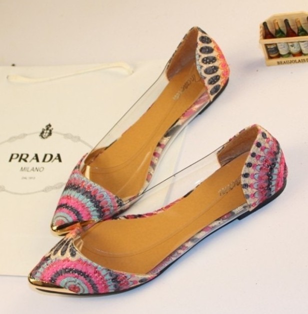 2014 New Arrival Korean Fashion Women’s Casual Floral Print Metal Decorative Pointed Toe Flats Shoes Free Shipping