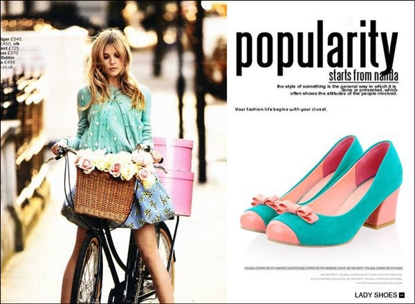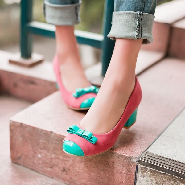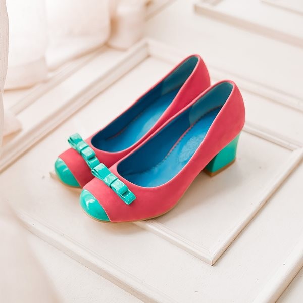 2014 New arrival Sweet bow spell color Thick Heel 3 colors women pumps women shoes size 34-39