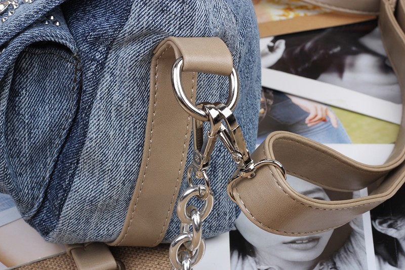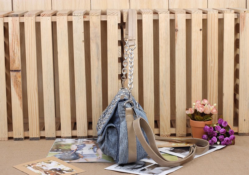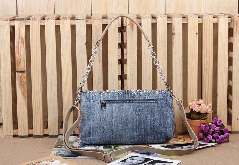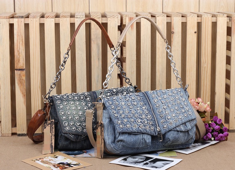 2014 new arrival women s vintage casual fashion denim handbag diamonds one shoulder chain bag female