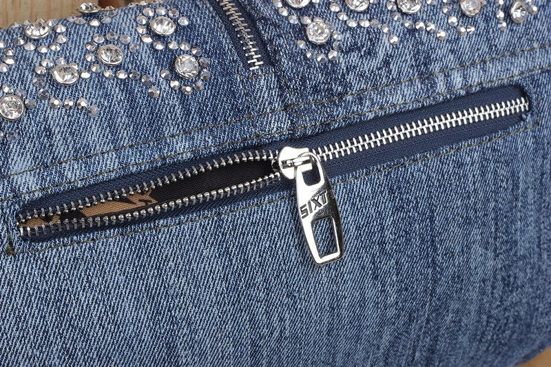 2014 new arrival women’s vintage casual fashion denim handbag diamonds one shoulder bag female jean women messenger bags
