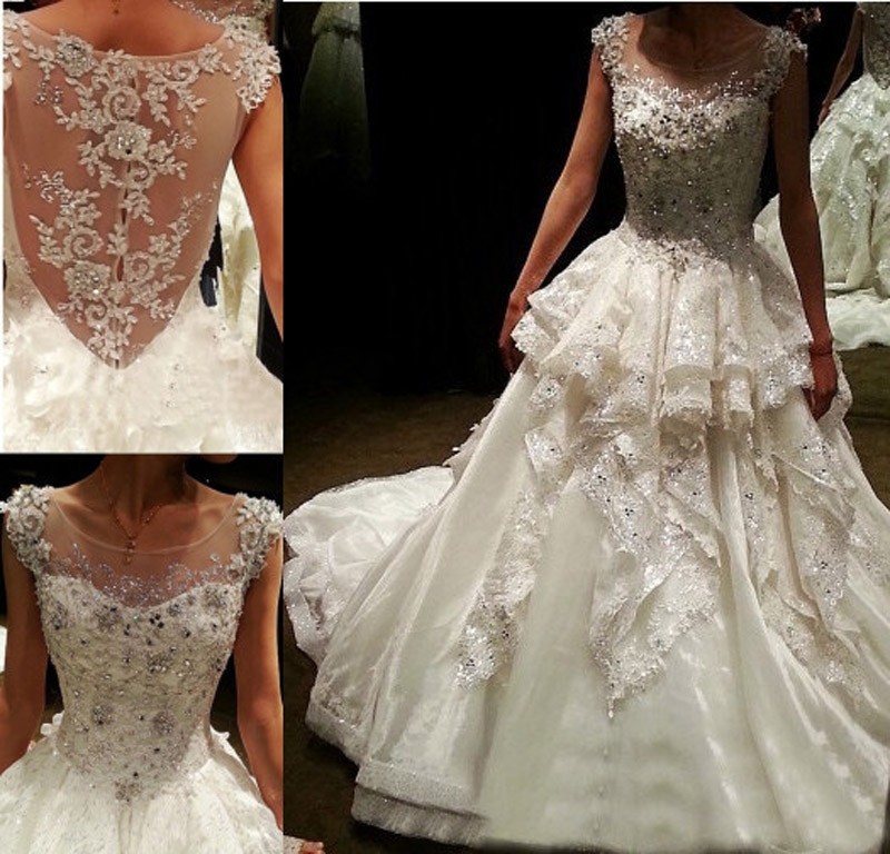 2014 New Arrivals Sweetheart Luxo Cristal vestidos de casamento Ivory Luxury Crystal Long wedding dresses china free shipping