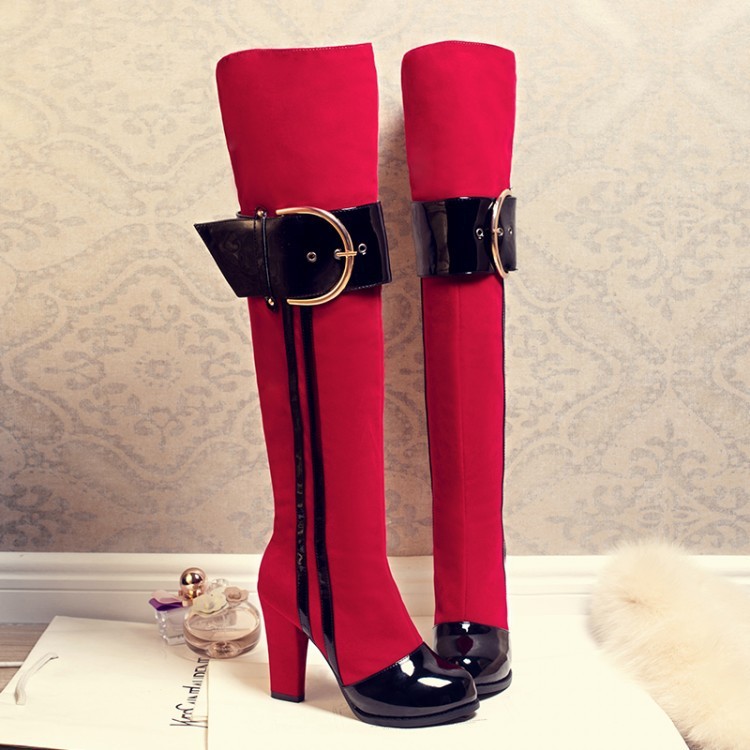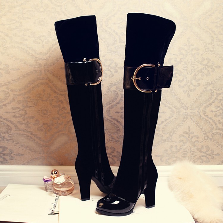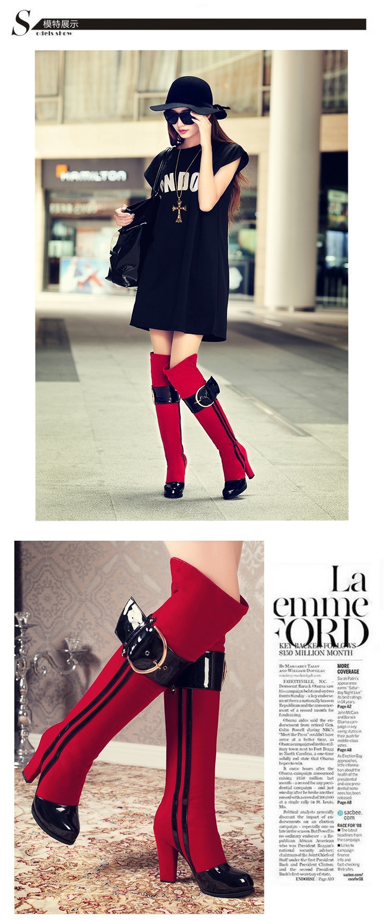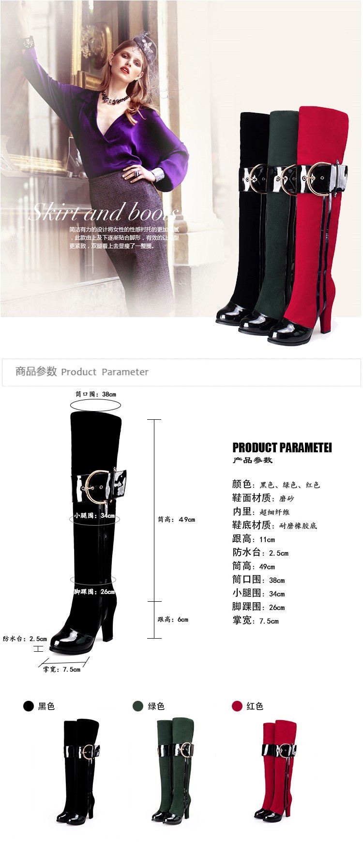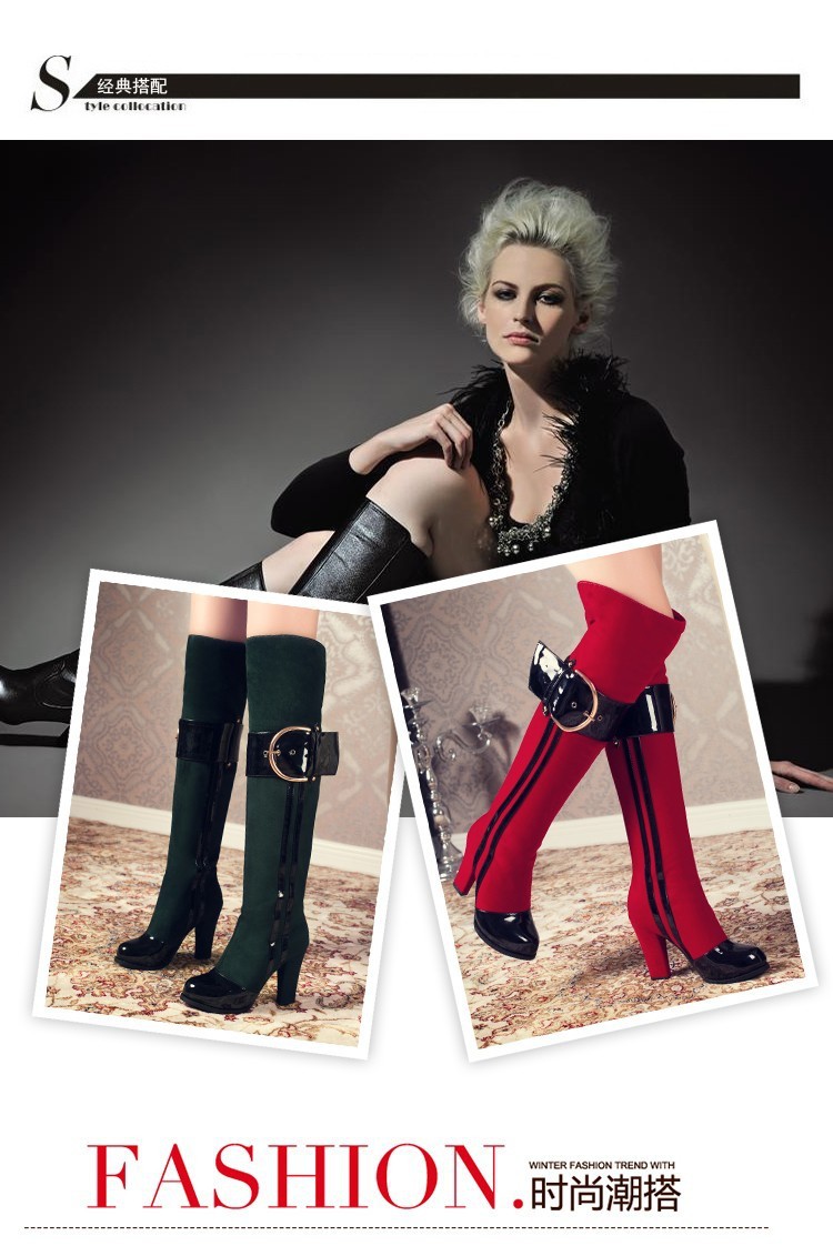 2014 new arrive women over knee long boots fashion buckle platform zip winter warm boot high ladies heels shoes big size 34-40 P