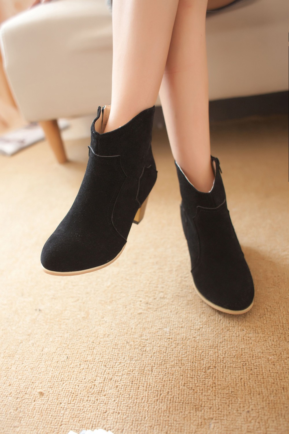 2014 new autumn buckle women ankle boots square heel flats sapatos femininos suede bota womens martin