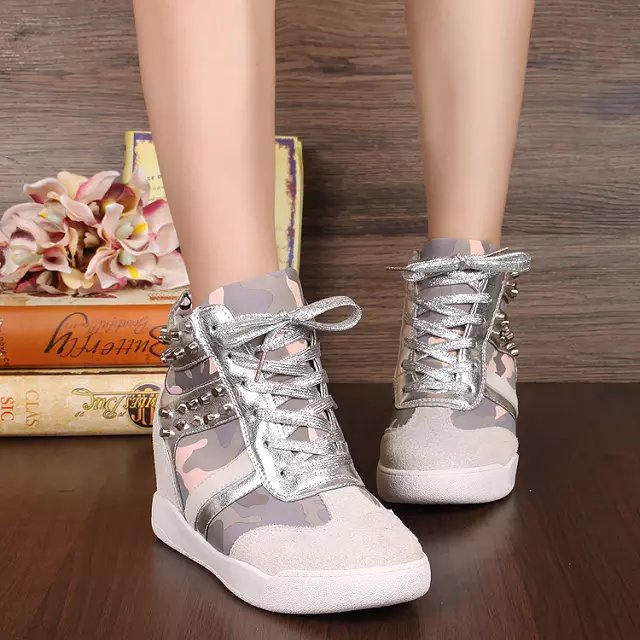 2014 New Camouflage Leather Sports Shoes Rivets Quality Brand Fashion Women Sneakers Platform Wedge Shoes Increased
