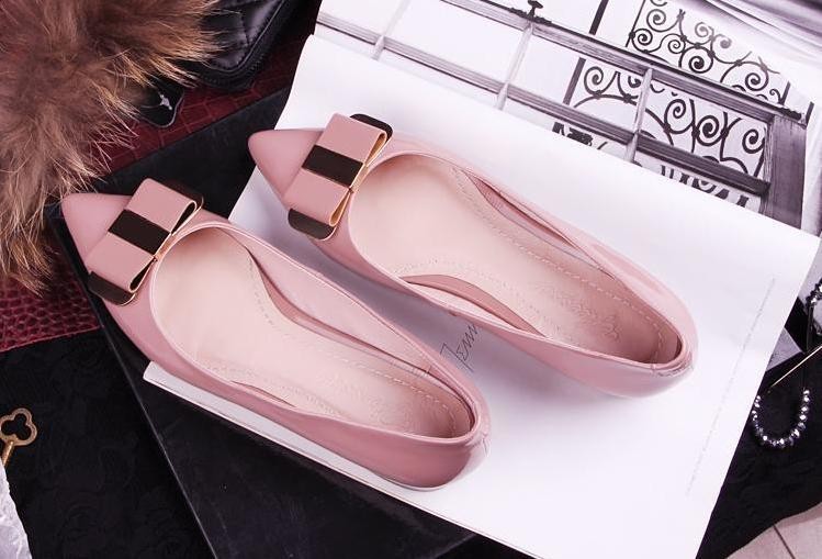 2014 new elegant bow flat shoes with singles 2-color optional solid OL flat shallow mouth shoes