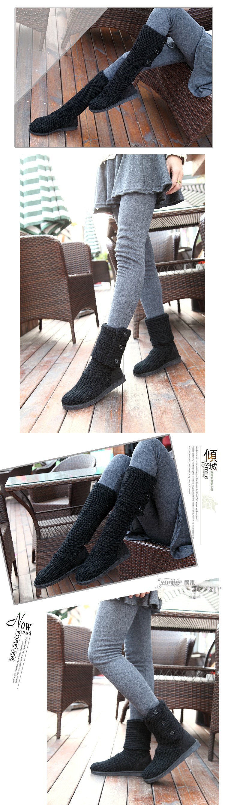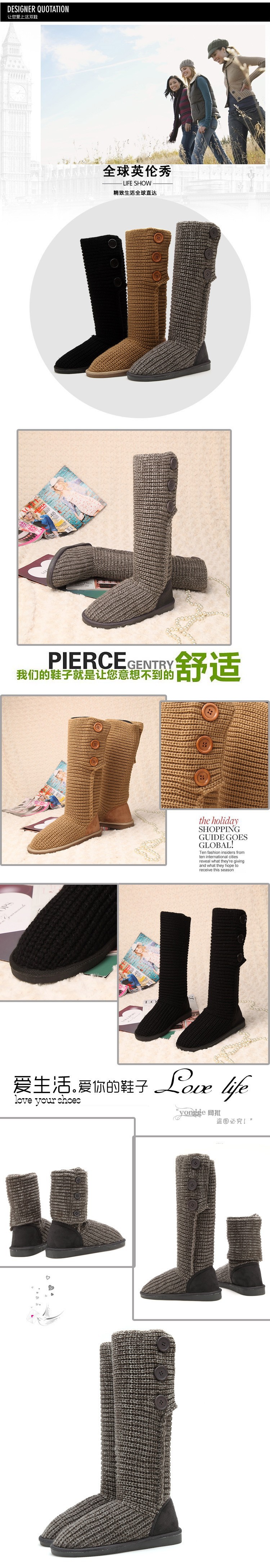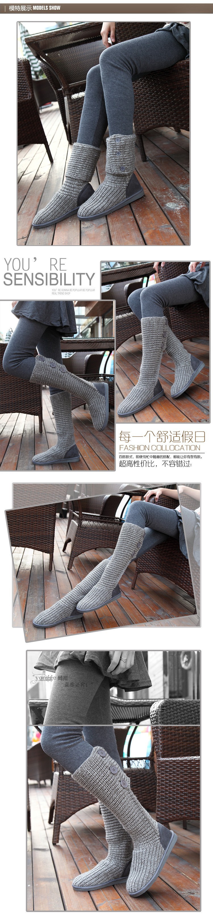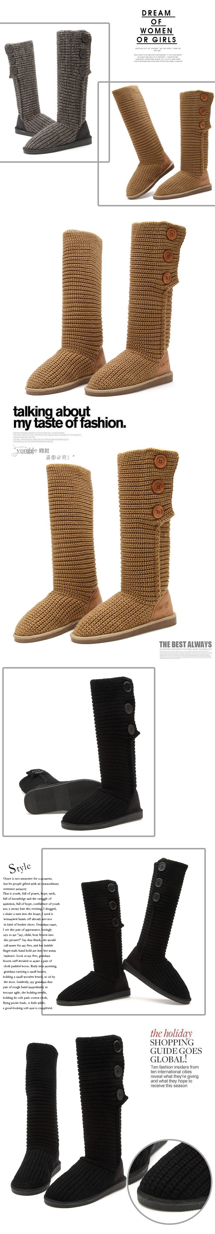2014 New Fashion Autumn Winter Women Mid-calf Knitting Wool Boots Quality European Warm Snow Boots Dual Ways High Boots