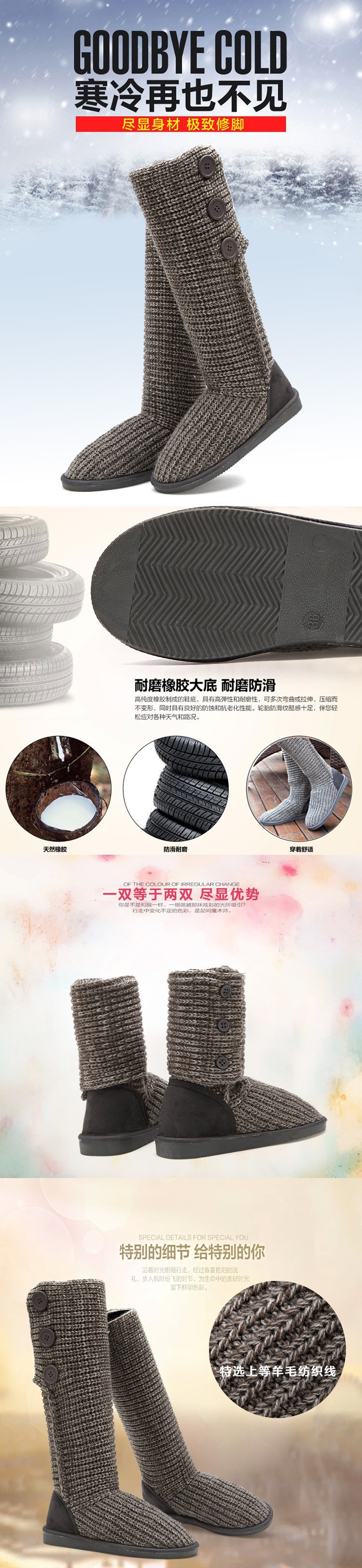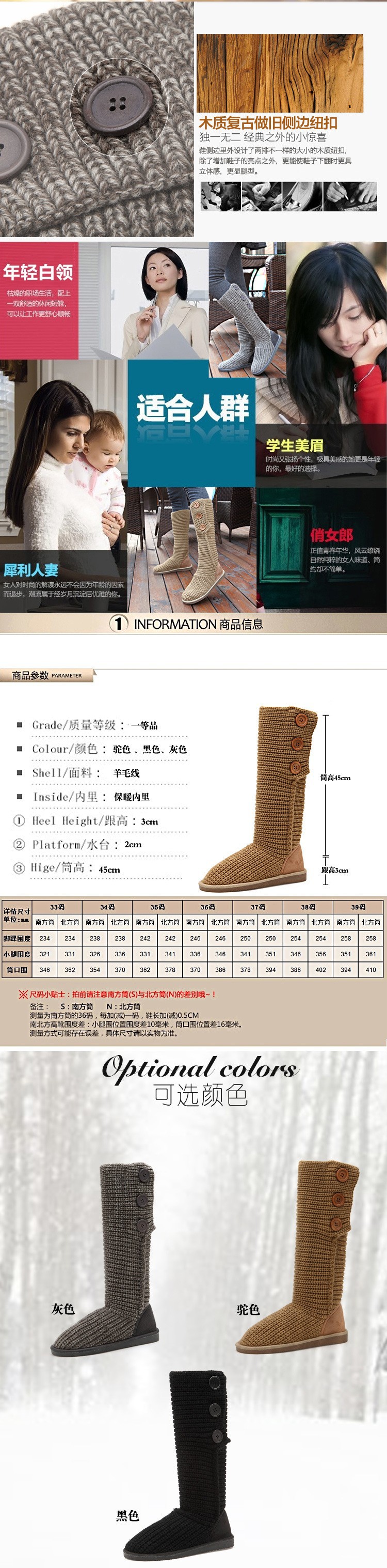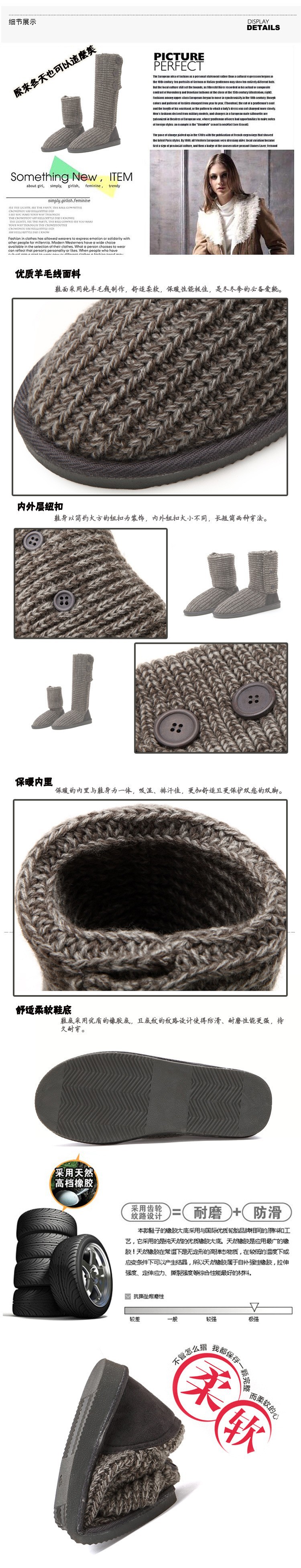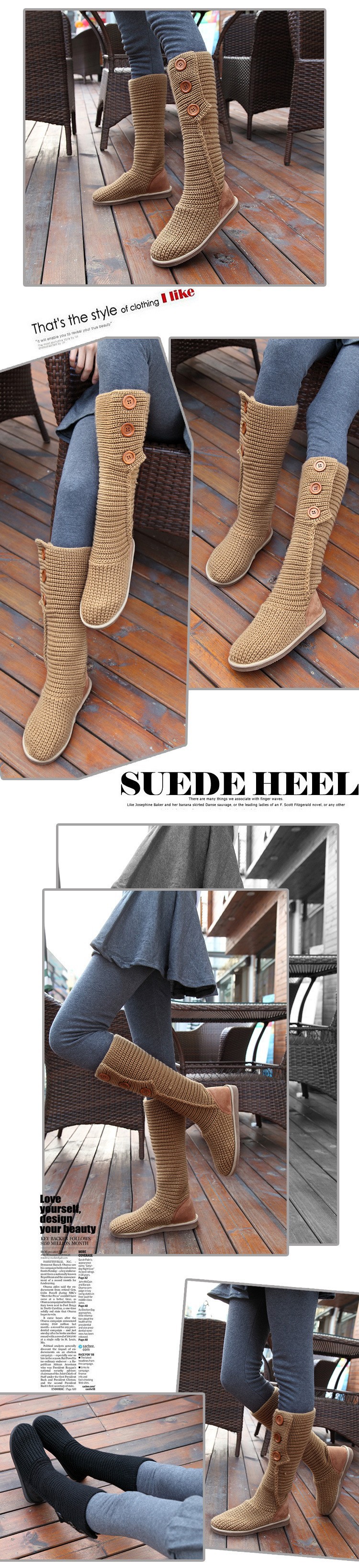 2014 New Fashion Autumn Winter Women Mid-calf Knitting Wool Boots Quality European Warm Snow Boots Dual Ways High Boots