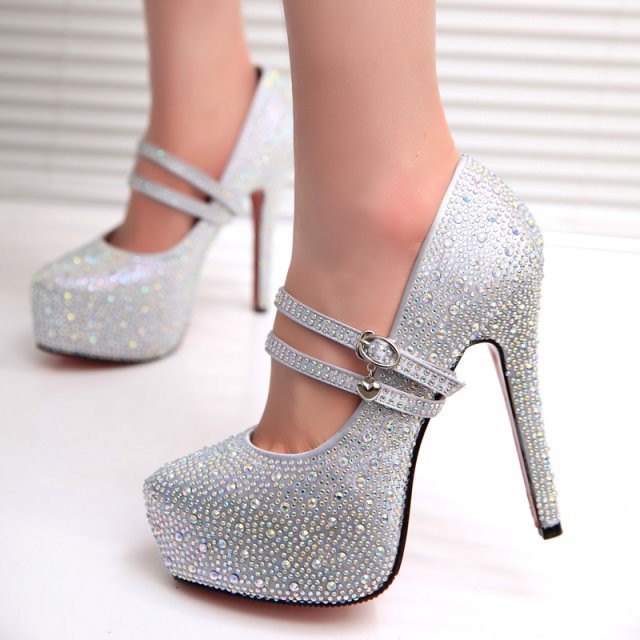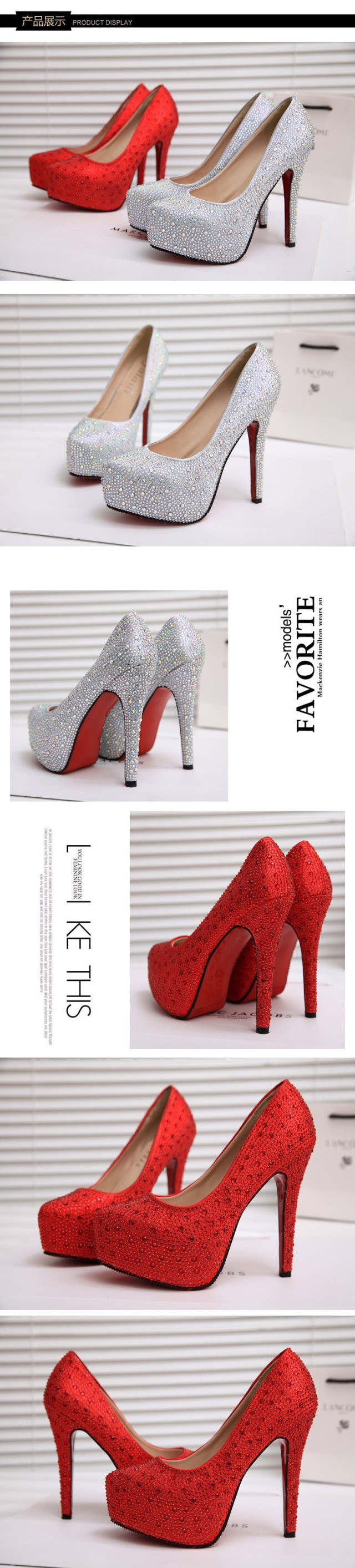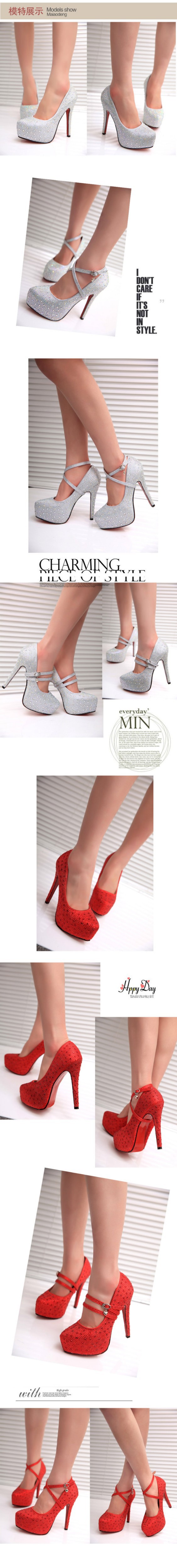 2014 new fashion bright rhinestone pure color waterproof leather pumps, Three methods of use women elegant high heels #0366